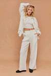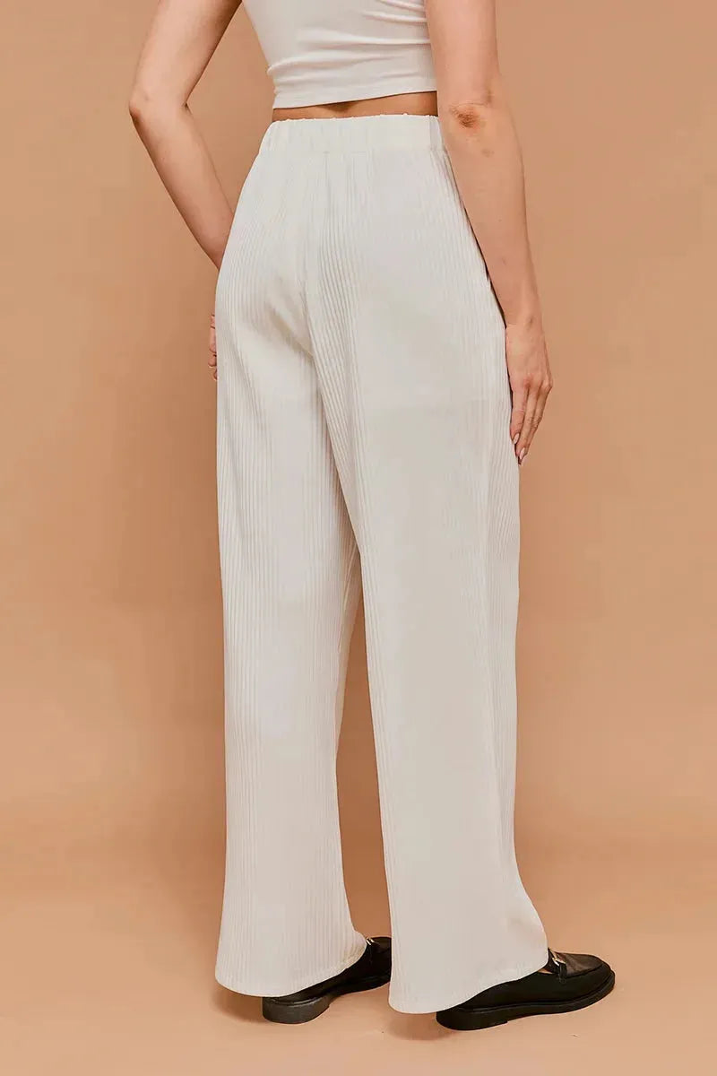 Oatmeal Ribbed Knit Wide Leg Elastic Waist Comfortable Lounge PantsVendor:White Birch