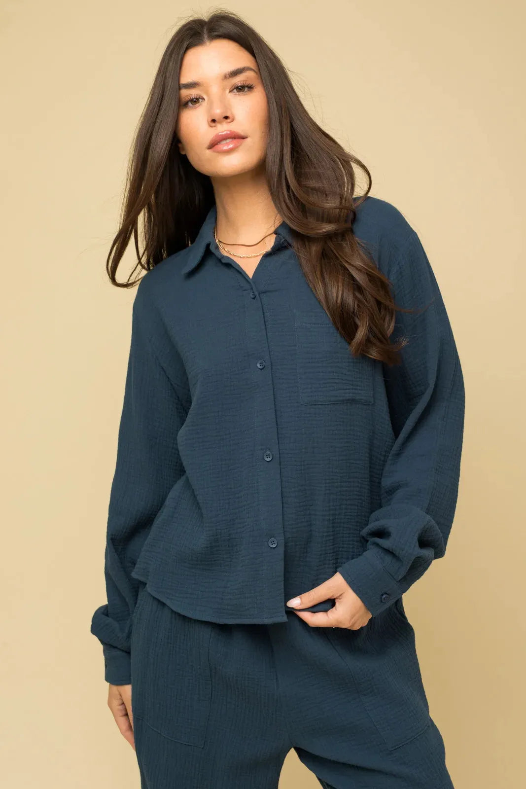 Women shirt, solid color, 100% Cotton, long sleeve, front buttons, boho style, cute, sweet, girly, this shirt is a versatile and stylish choice!