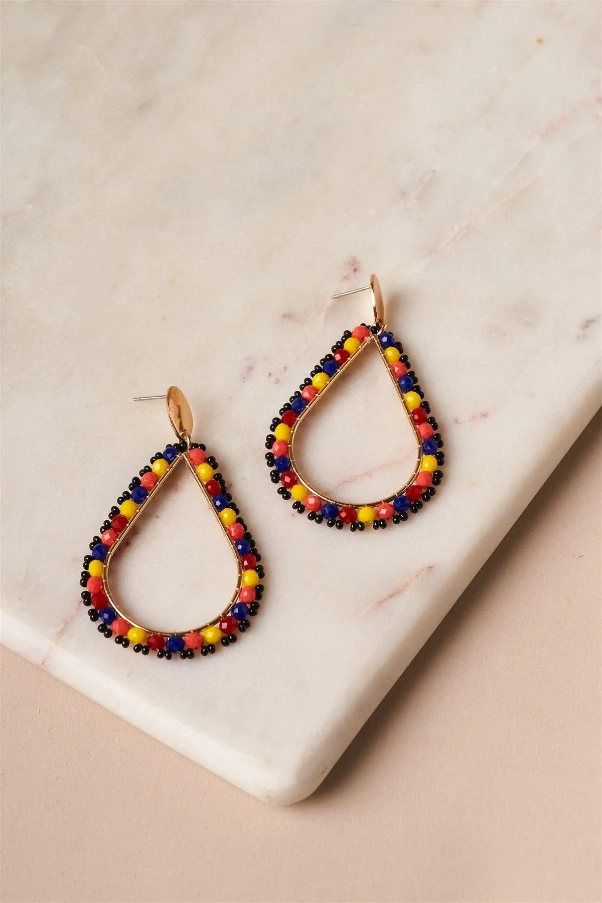 Multi Beaded Hoop Teardrop Earrings /1 Pair