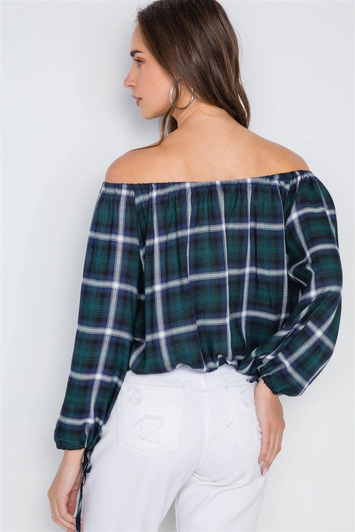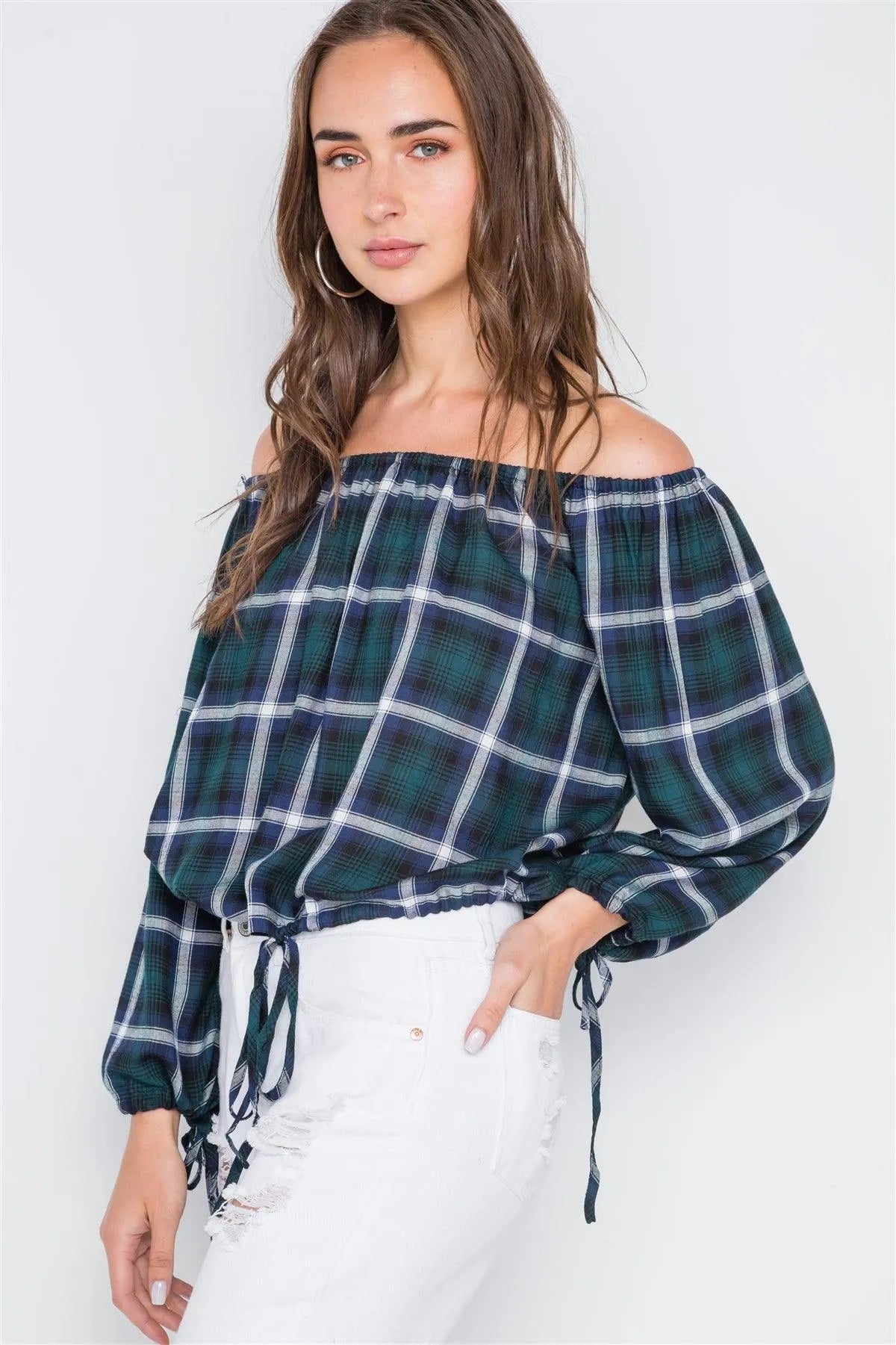 Multi Black Plaid Off-The-Shoulder Top /1-3-3