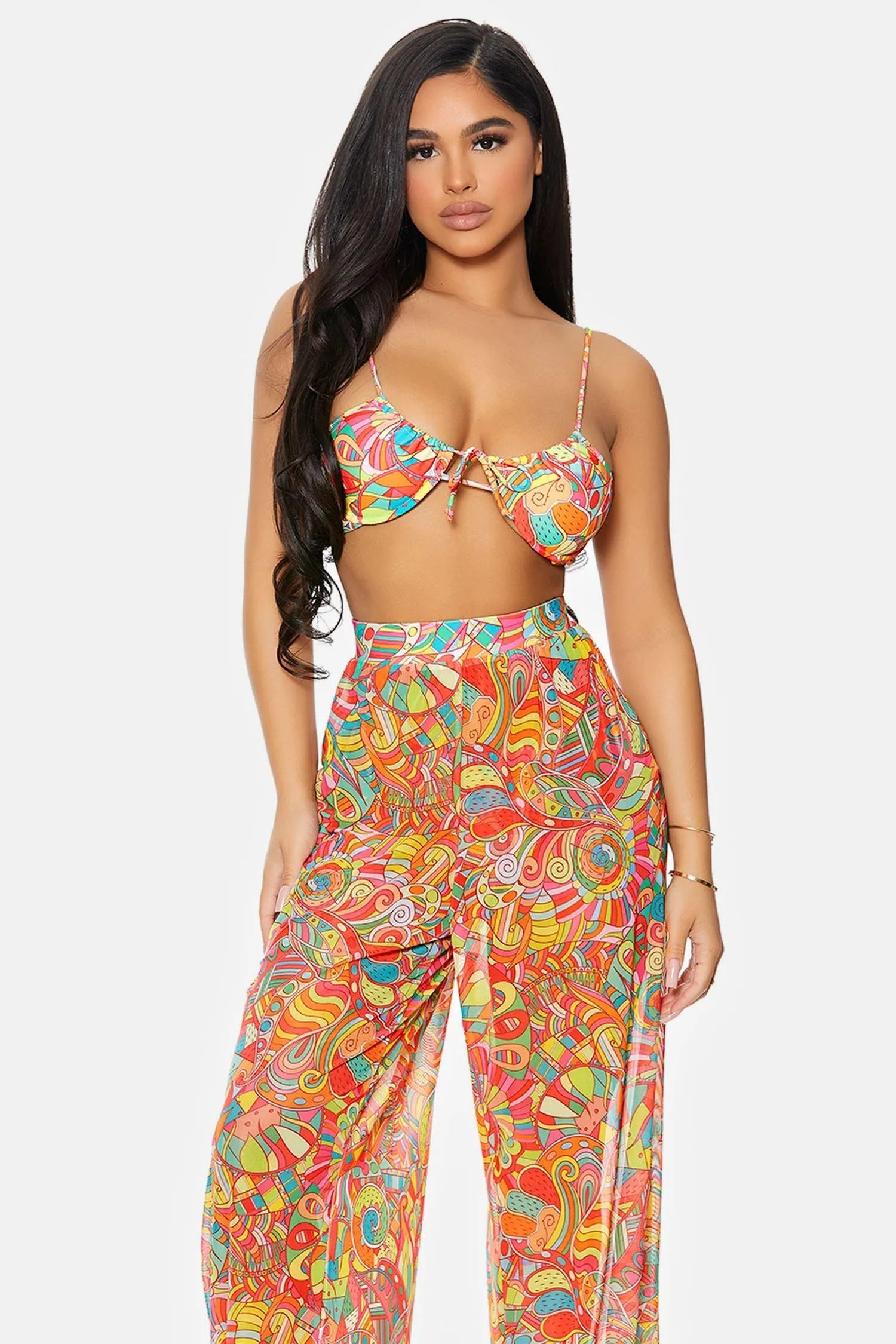 Multi Kaleidoscope Coverup Mesh Sheer Pool Swimwear High Waist Bottom Pants