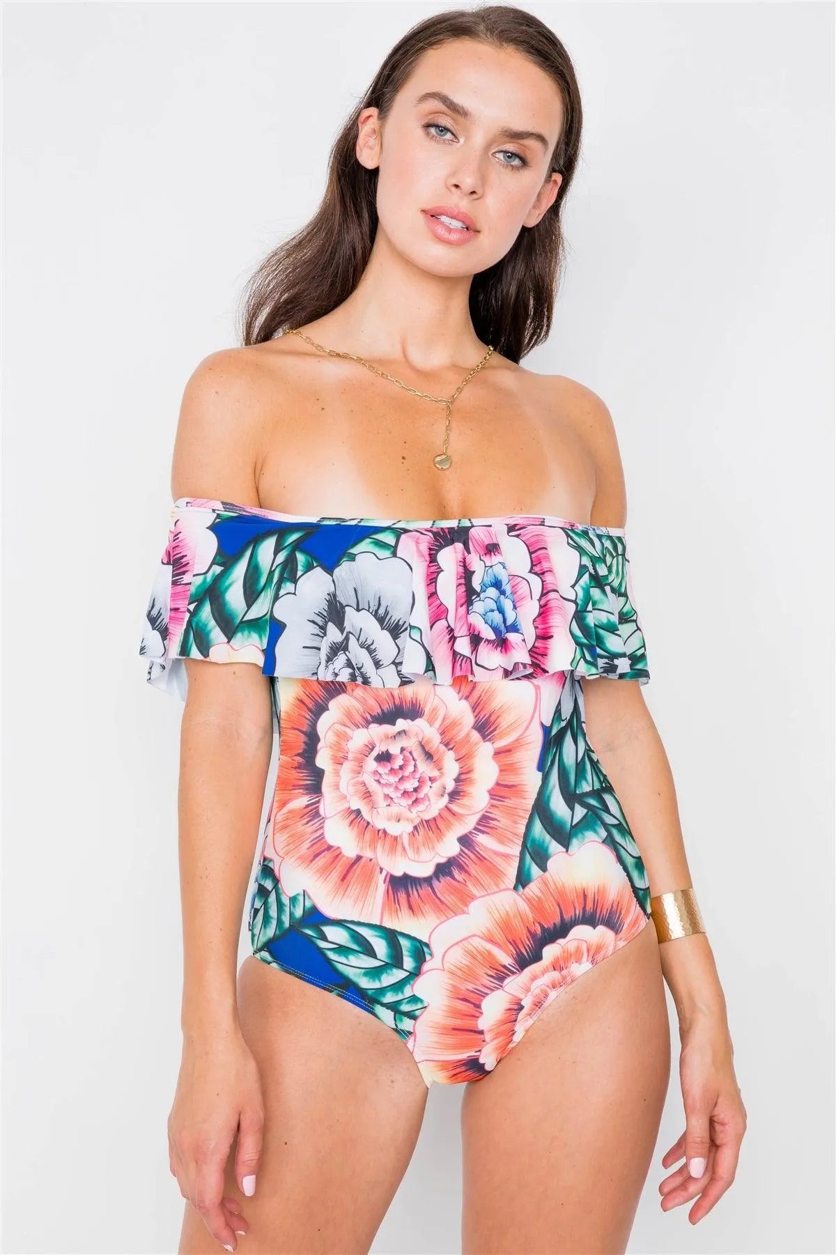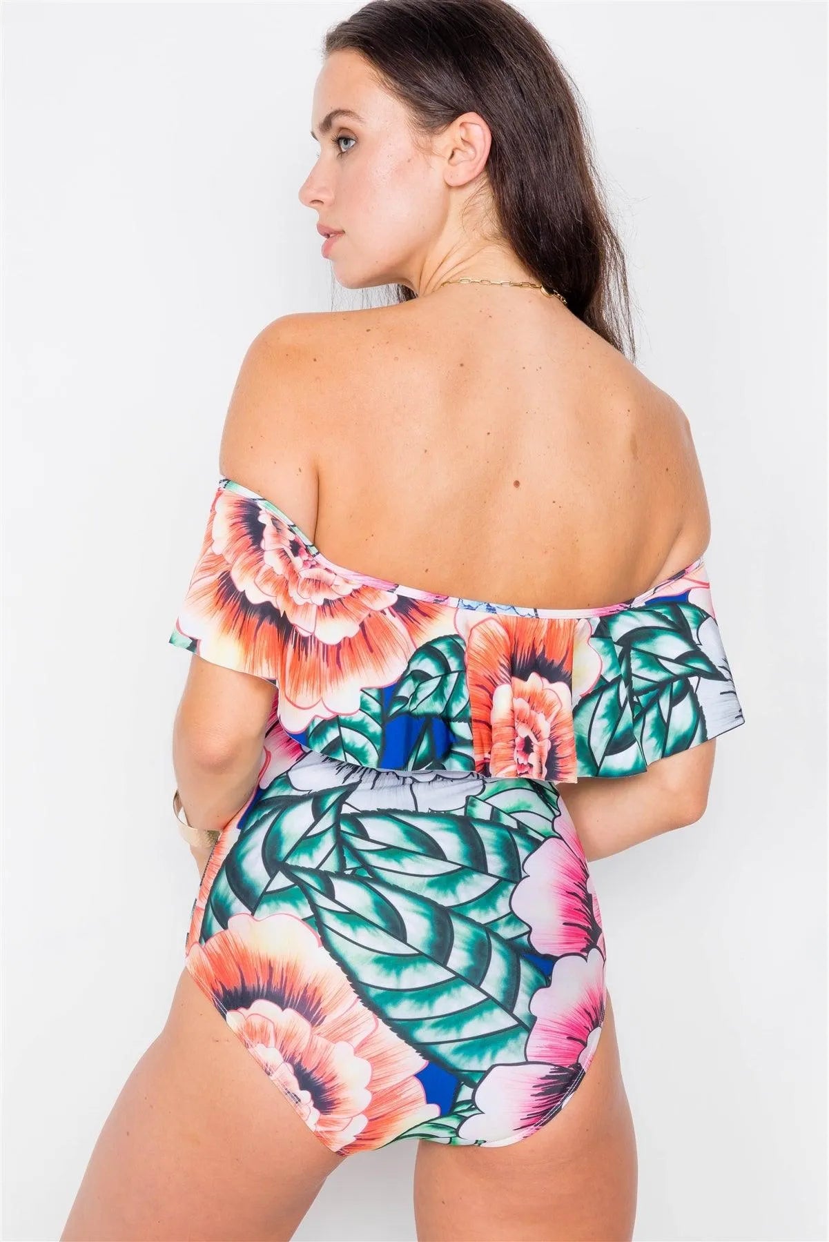 Multi Floral Off-The-Shoulder Flounce One Piece Bikini /1-1-1-1