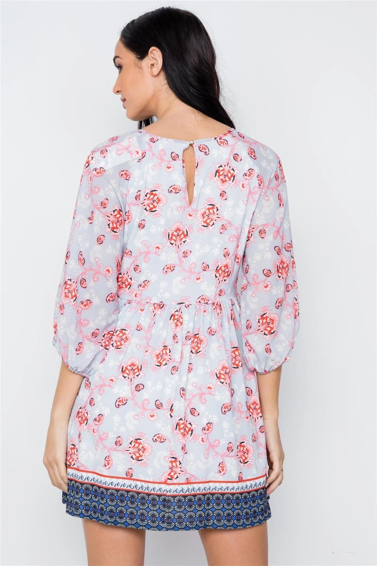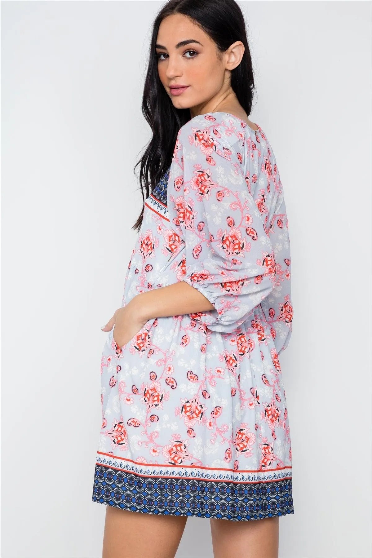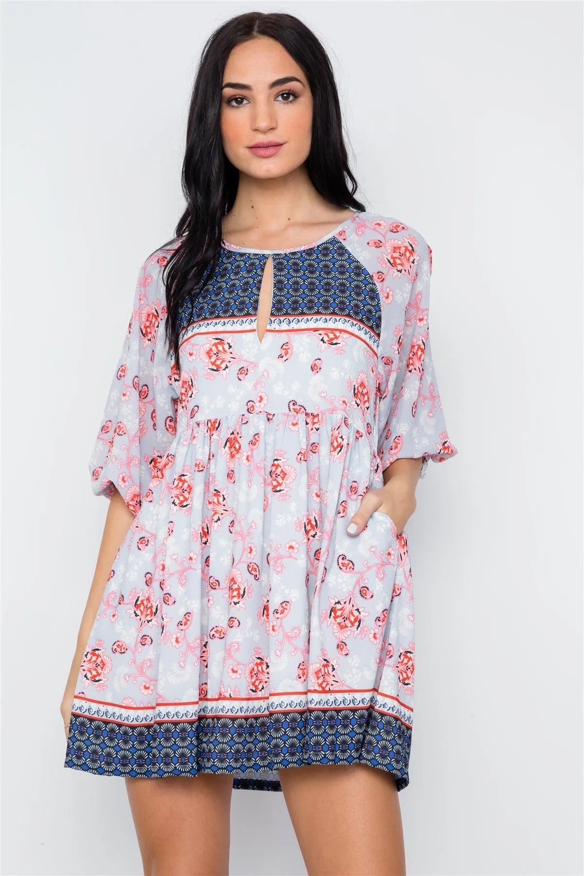 Multi Grey Paisley Boho Mini Dress /2-2-2