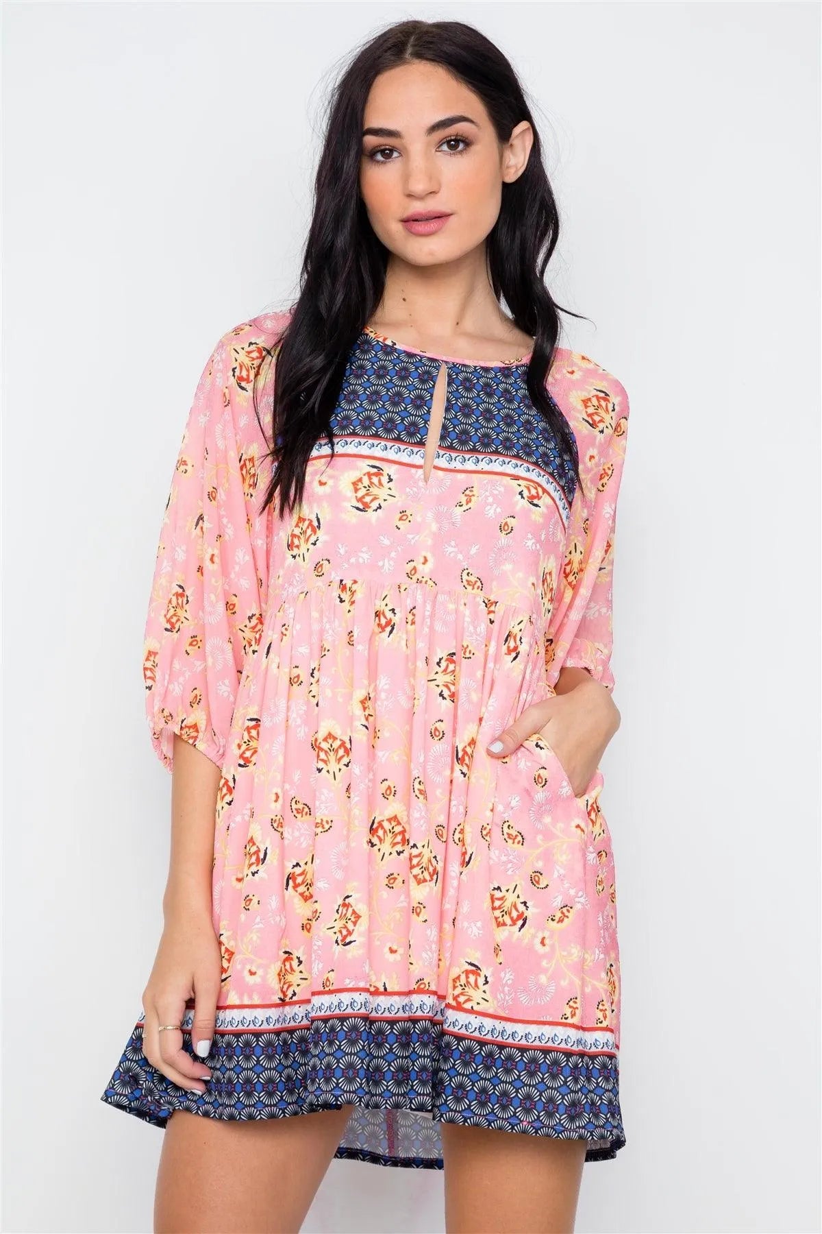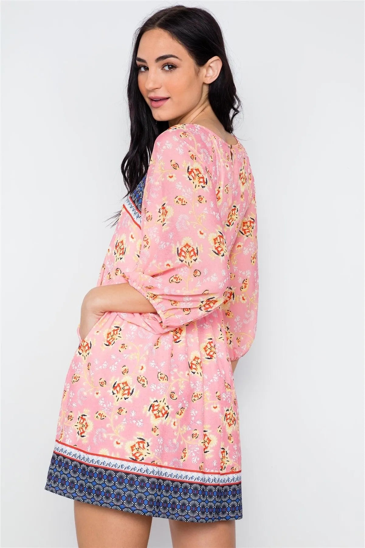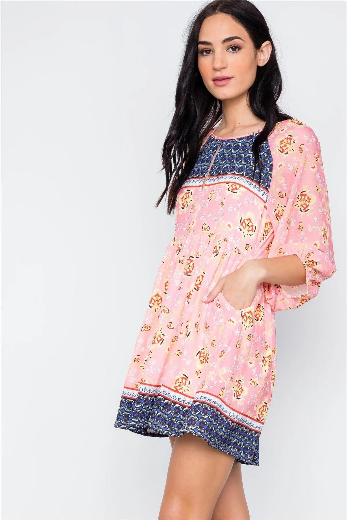 Multi Peach Paisley Boho Mini Dress / 2-1