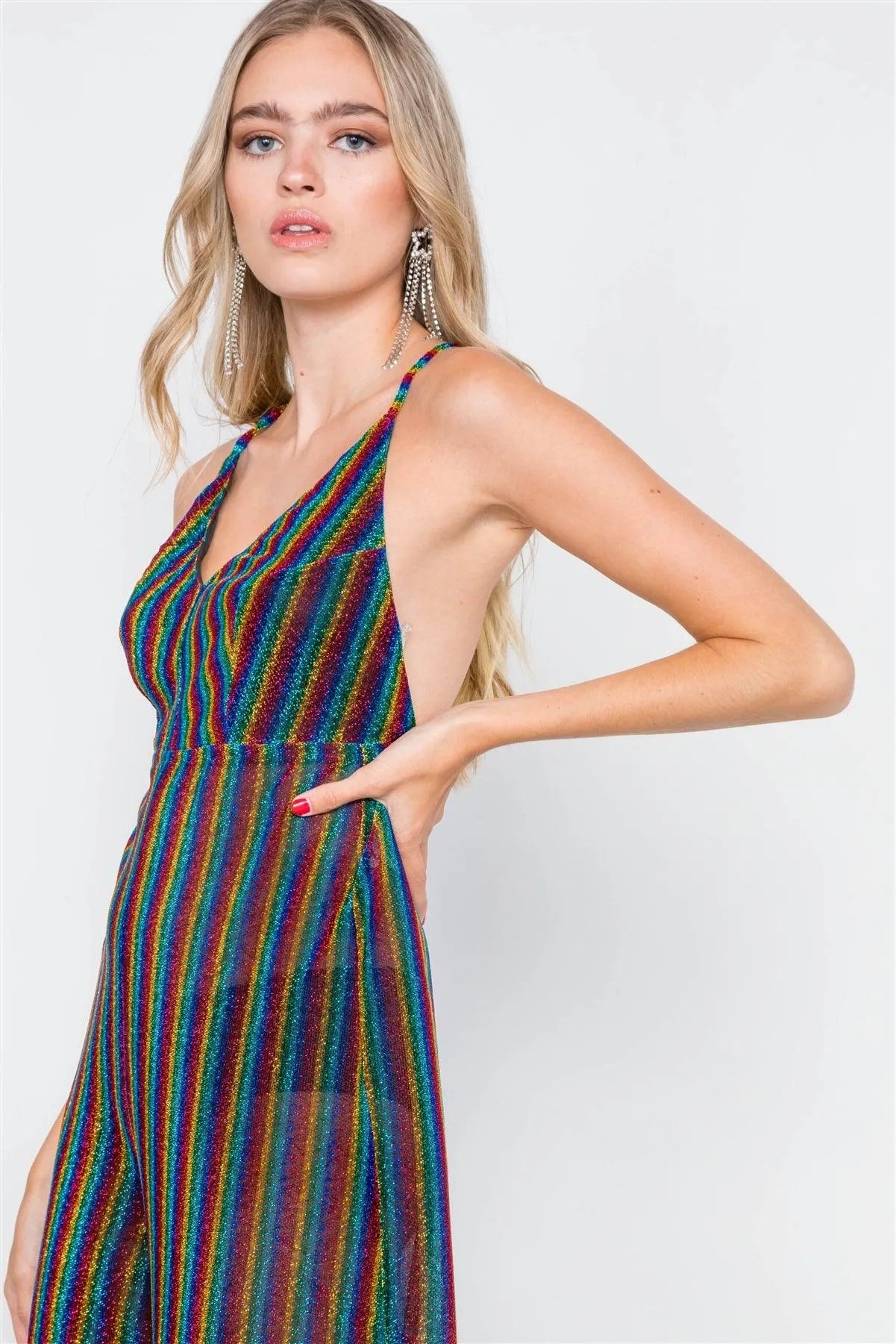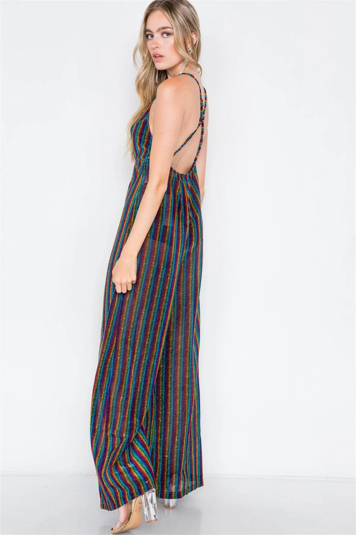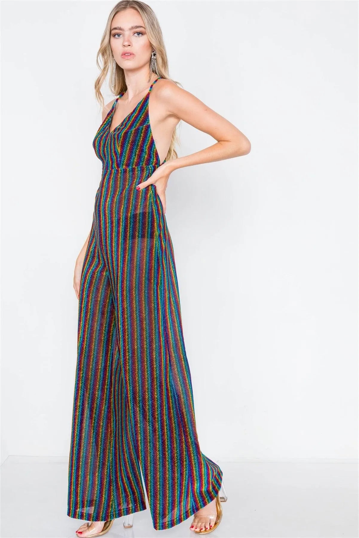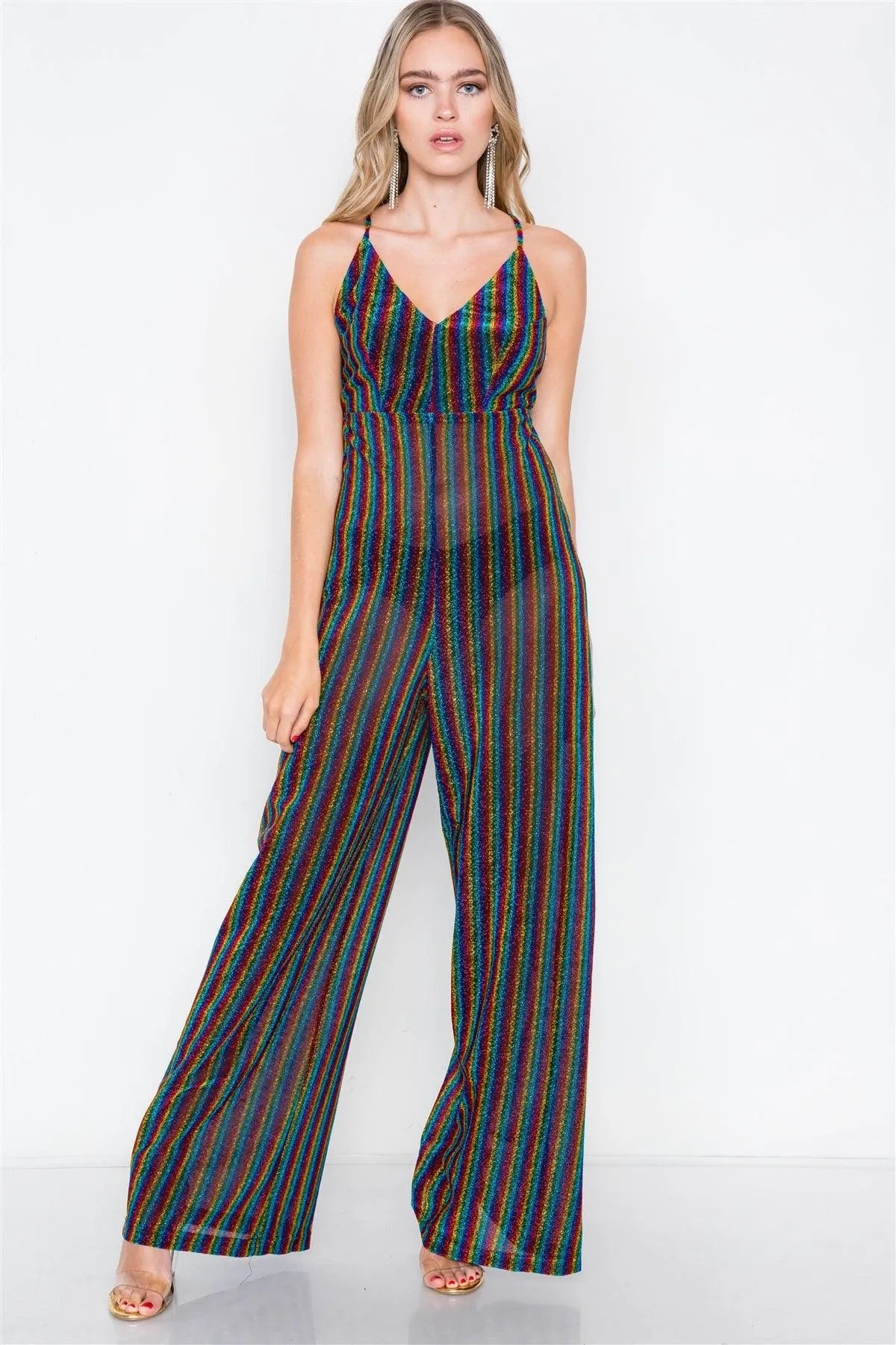 Multi Stripe Wide Leg Cami V-Neck Jumpsuit /2-2-2