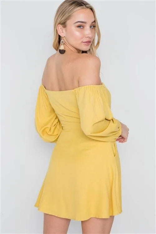 Mustard Off-The-Shoulder Button Down Boho Mini Dress /3-2