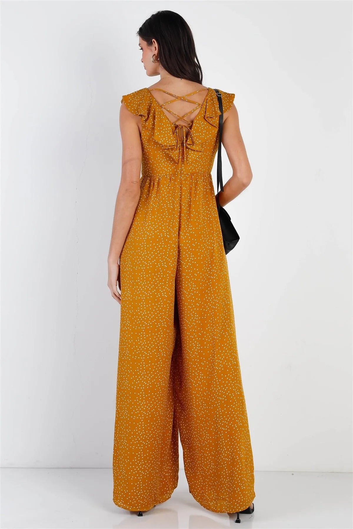 Mustard & White Polka Dot Back Lace Up Detail Jumpsuit /1-2-2-1