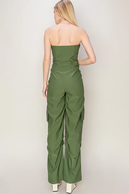 Relaxed Cotton Mineral Wash Pockets Harem Lounge RomperVendor:HYFVE