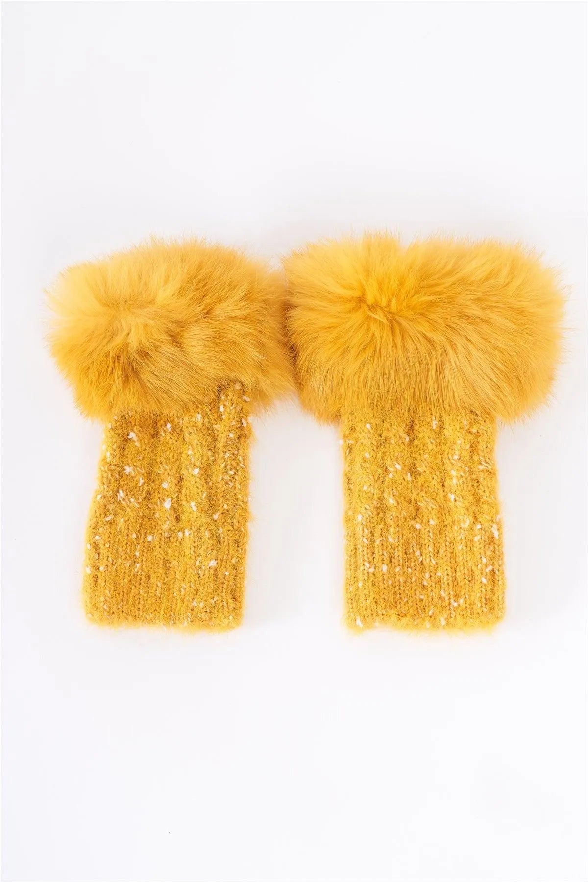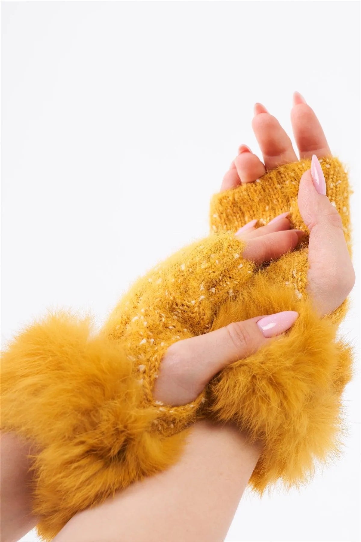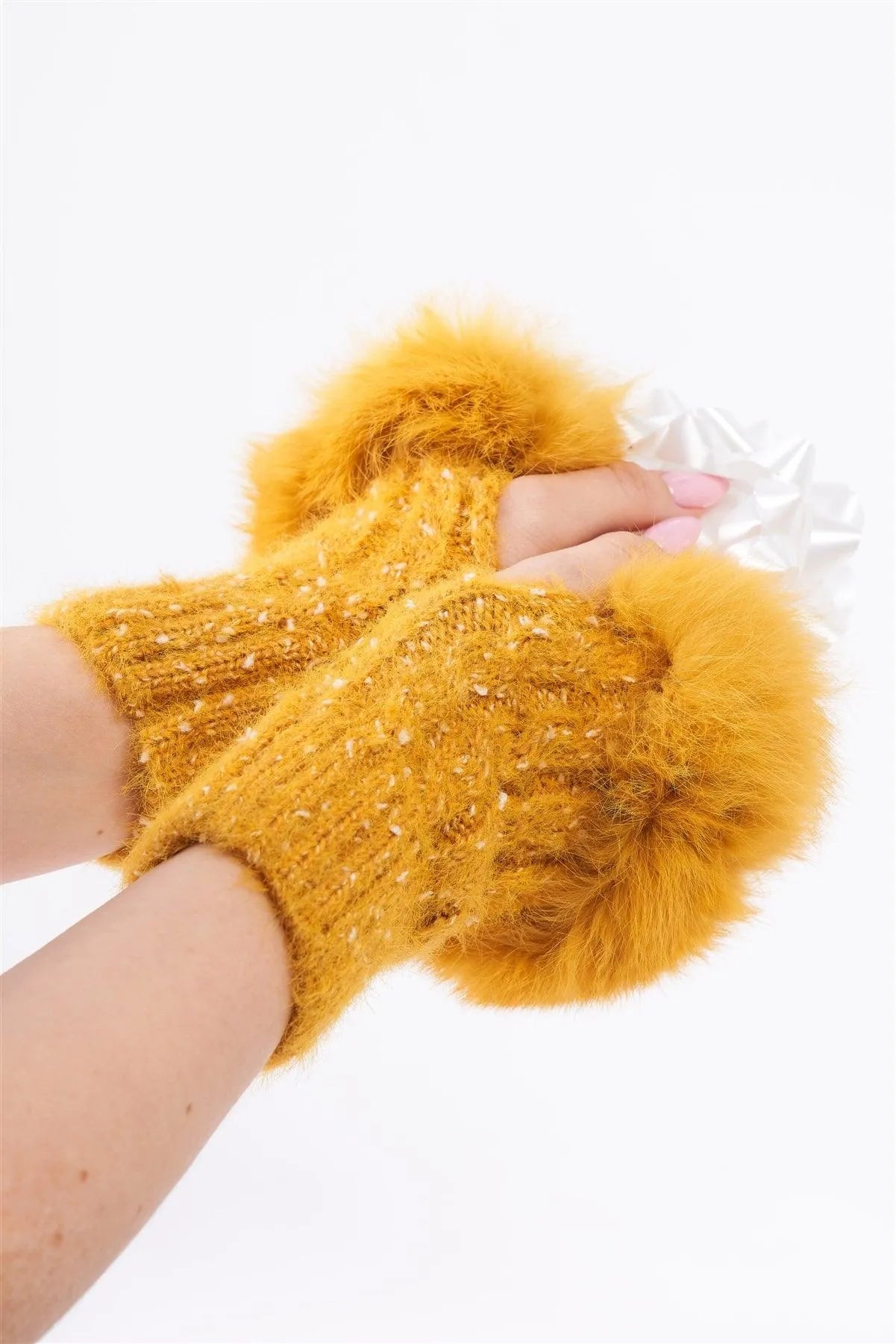 Mustard Woven Furry Fingerless Two-Way Winter Gloves /3 PiecesVendor:Fame