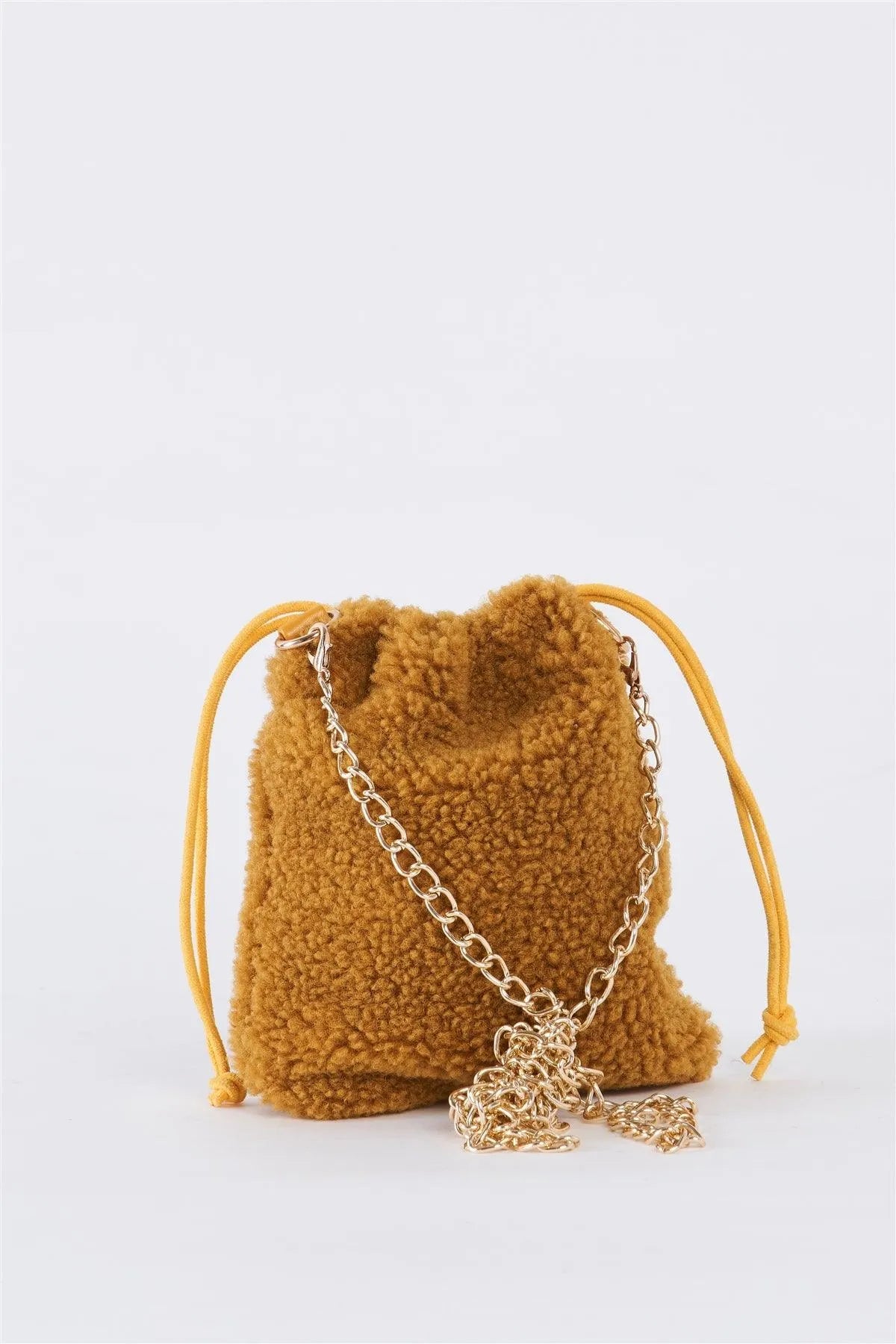 Mustard Yellow Faux Fur Plush Crossbody Pouch Bag /3 Bags