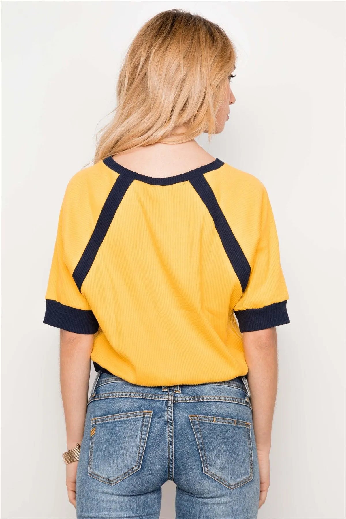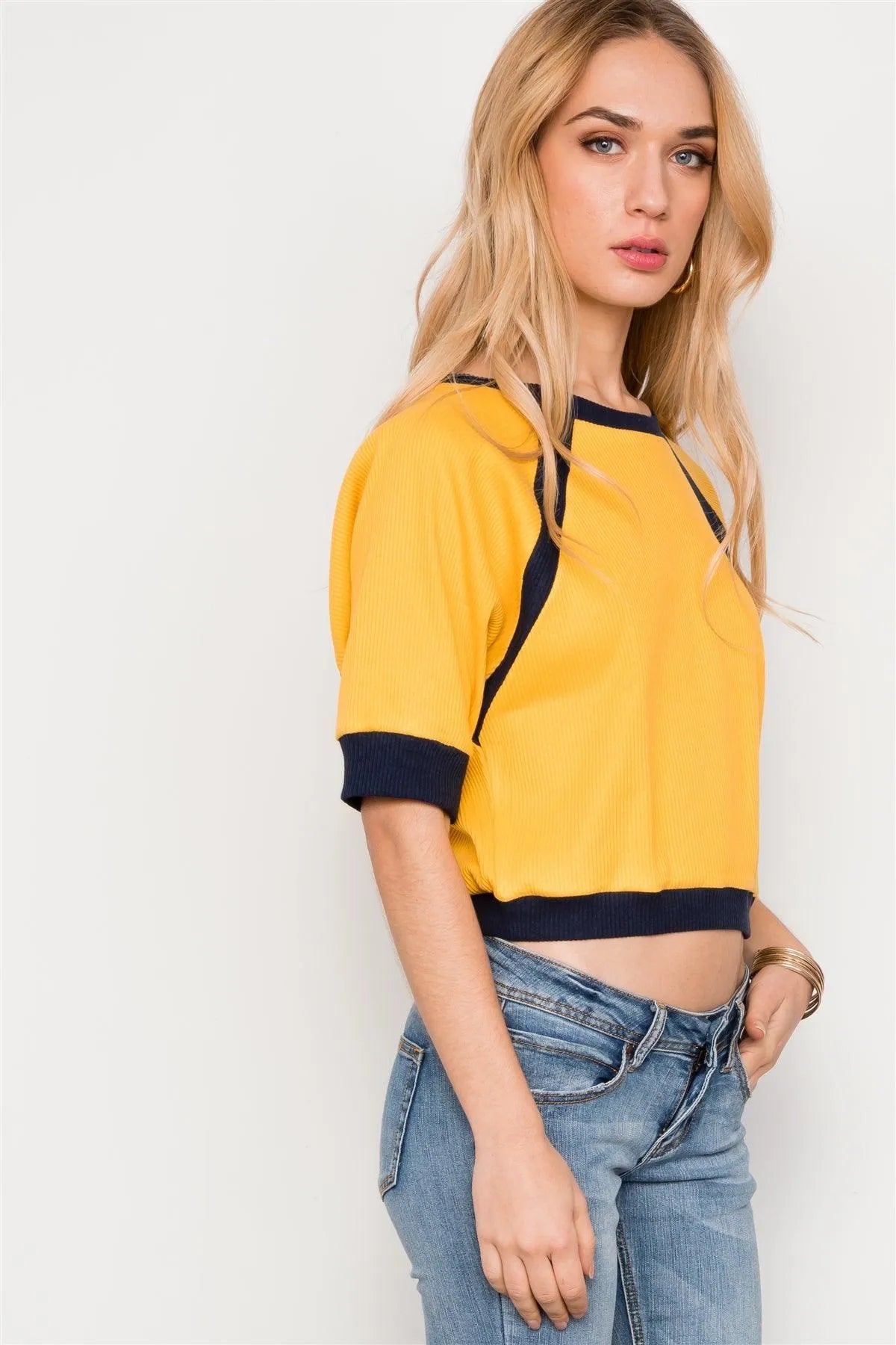 Mustard/Yellow Dolman Sleeve Ribbed Cropped Top /2-2-2