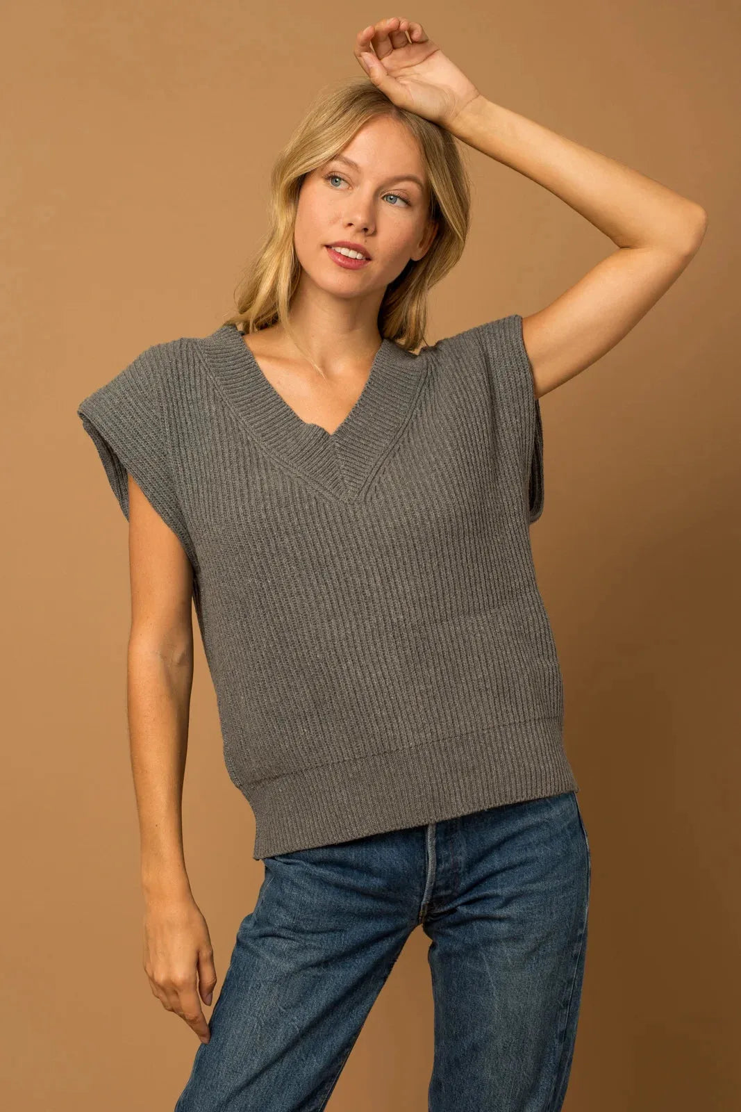 Women sweater vest: solid color, sleeveless, relax fit, deep v-neck, warm, cozy, cute, sweet, girly, casual sweater for a casual every day look!