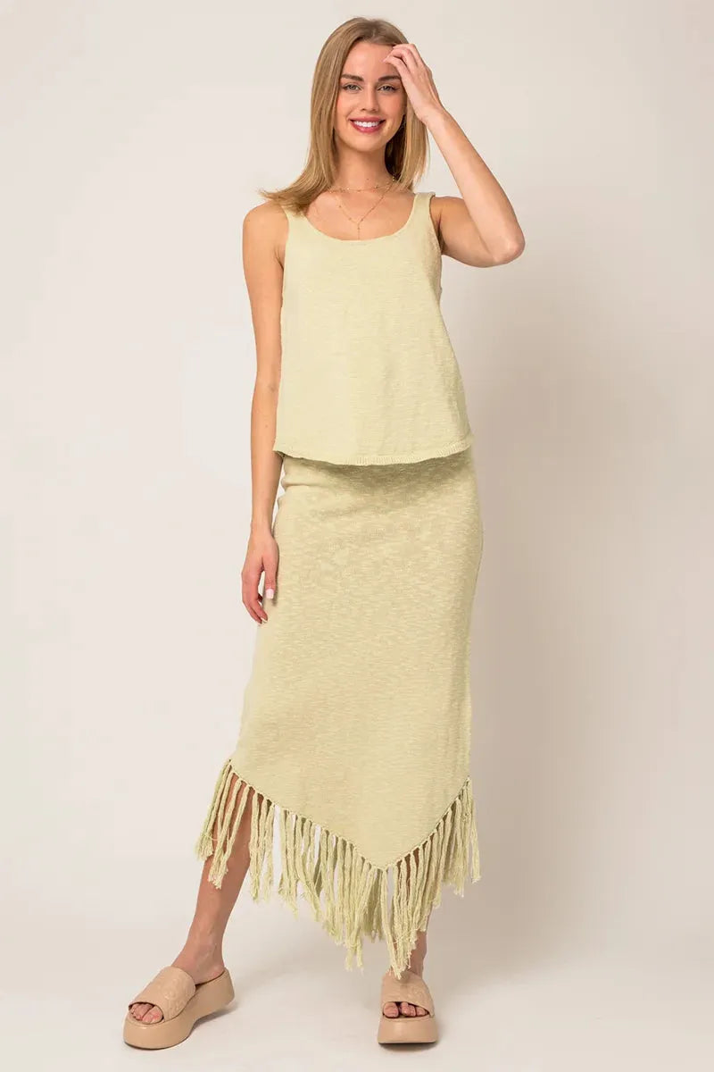 Crop Tank Top & Tassel Knitted Midi Skirt Set