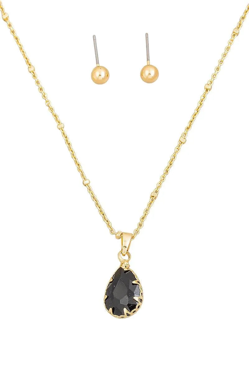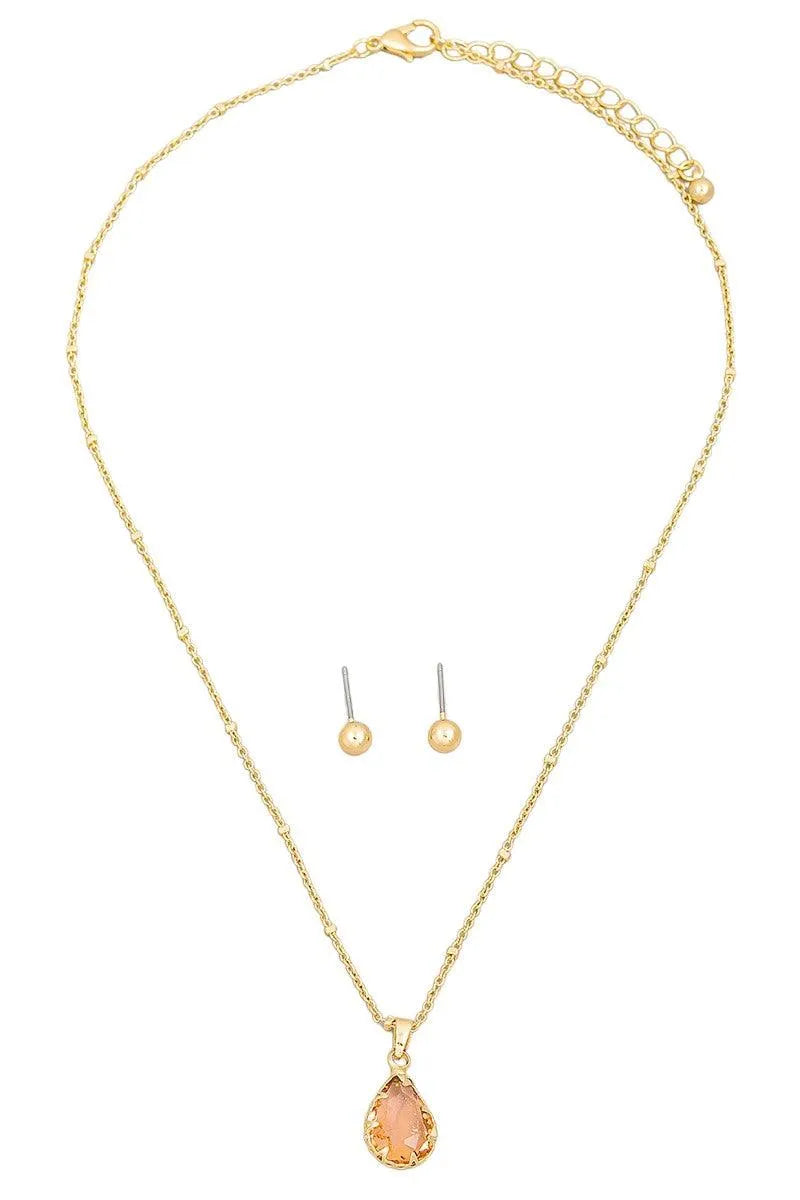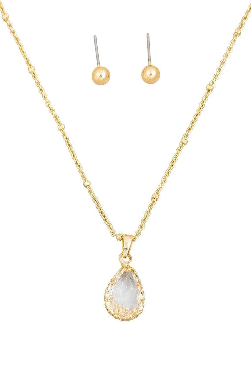 Crystal Teardrop Necklace & Small Ball Earring Set