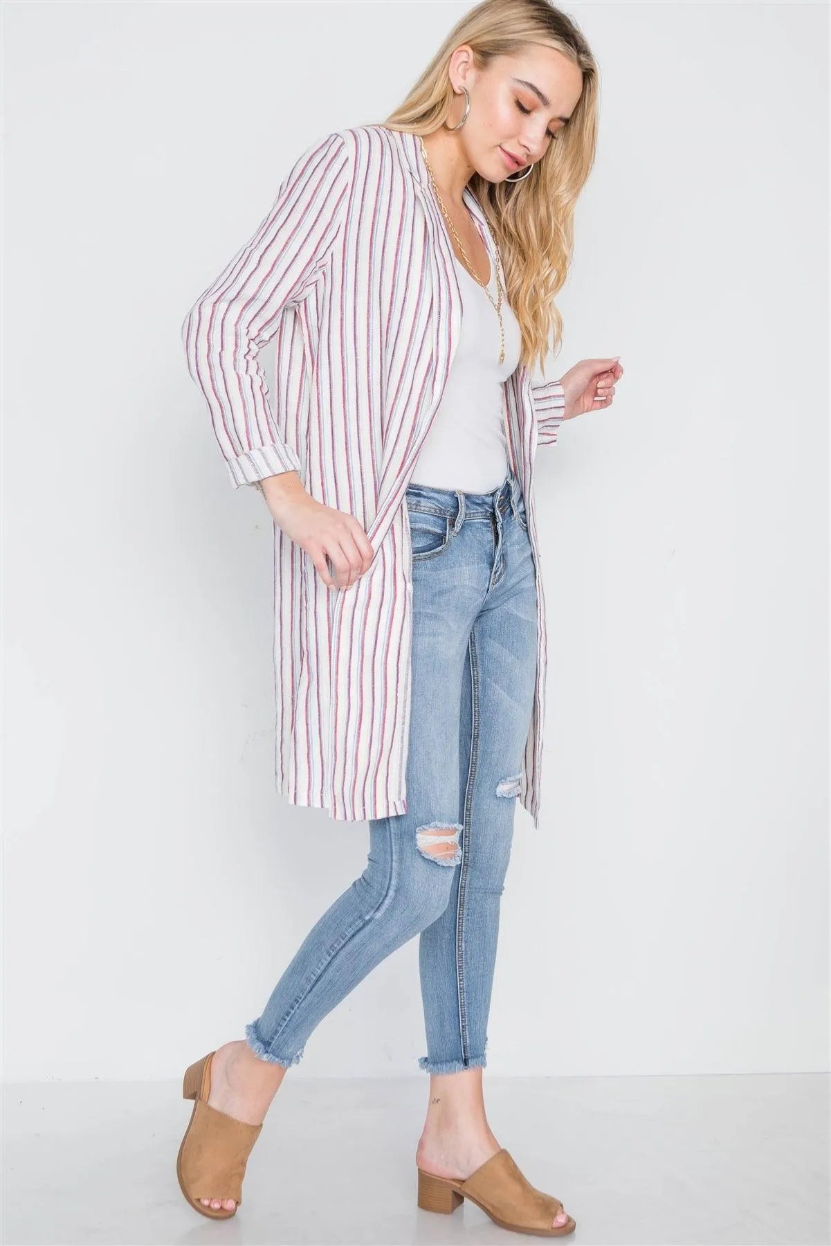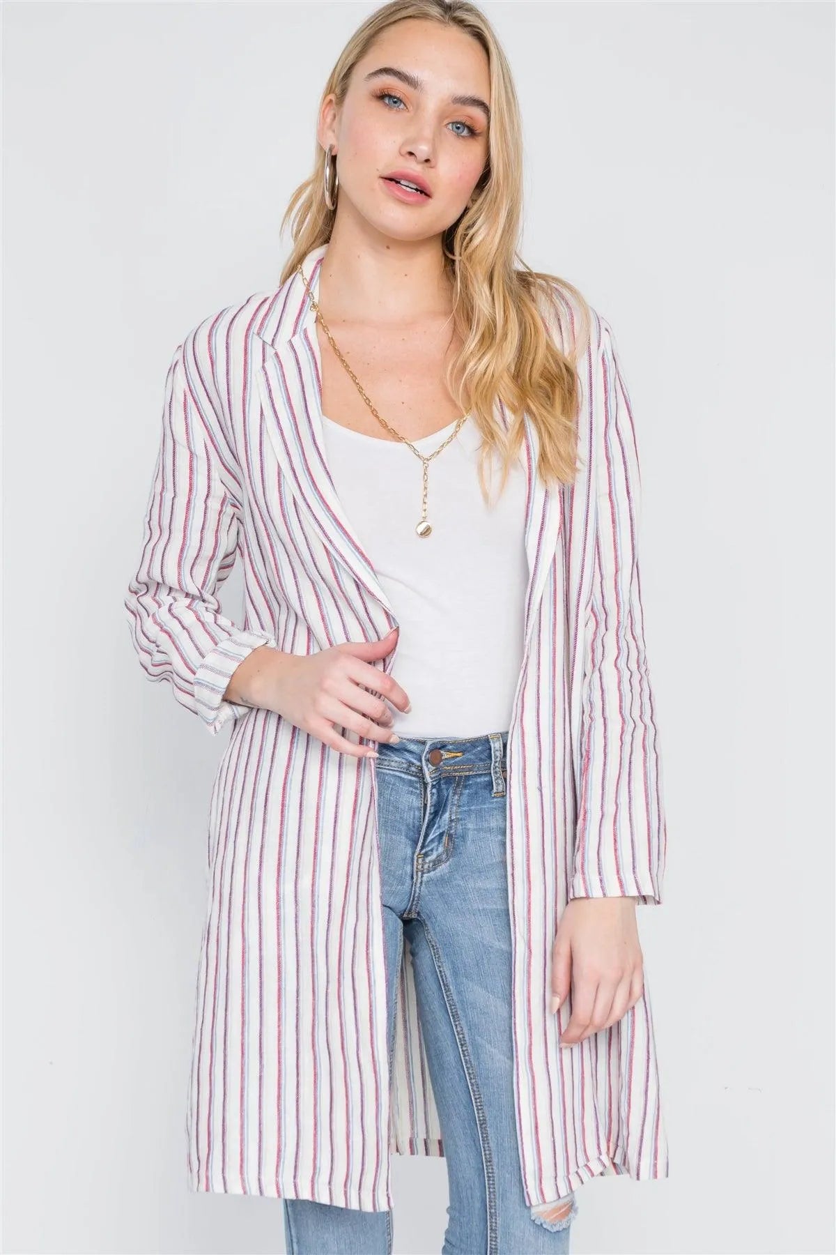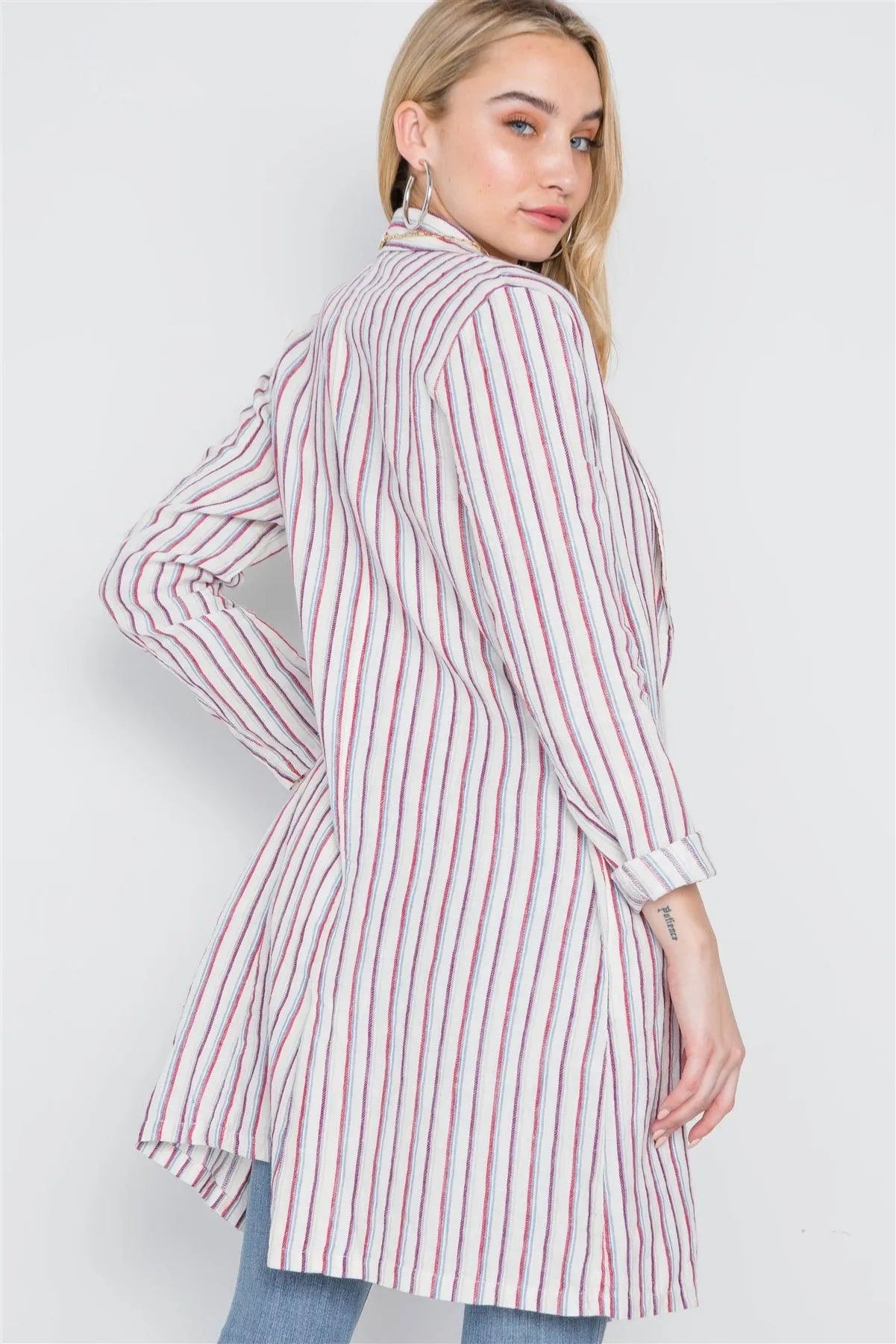 Natural Blue Open Front Stripe Long Sleeve Coat /2-3-2