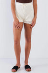 Natural Cream Crotchet Draw String High Waisted Boho Shorts /3-2-1