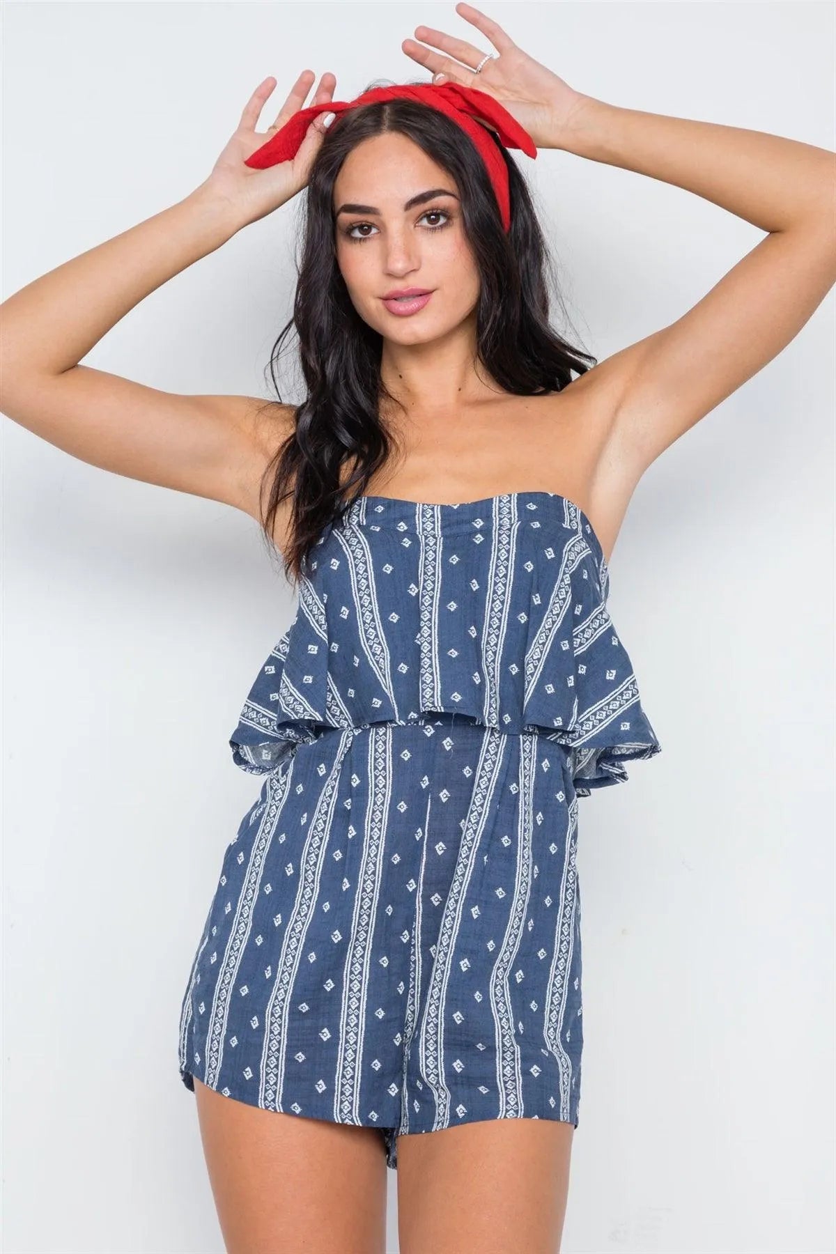 Navy Bandana Print Strapless Flounce Romper /1-3-2-1
