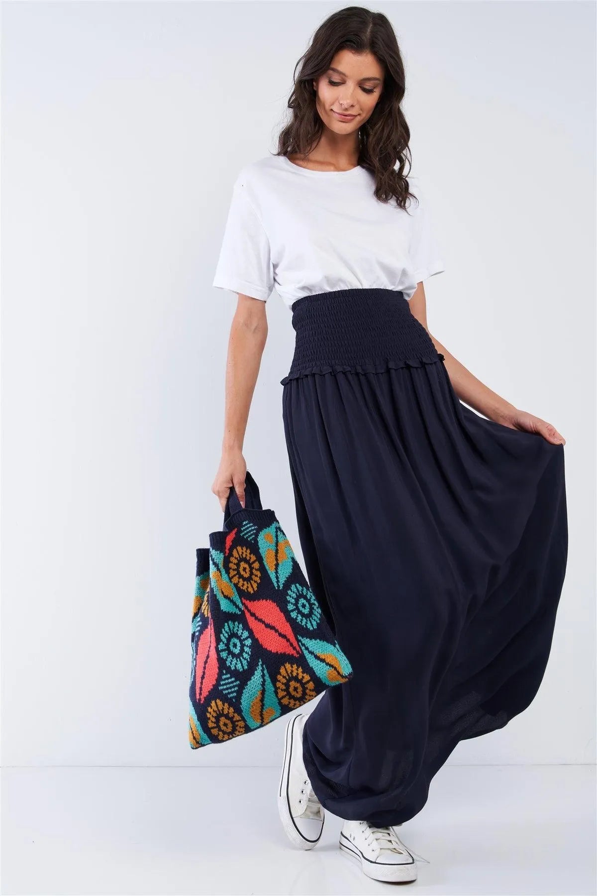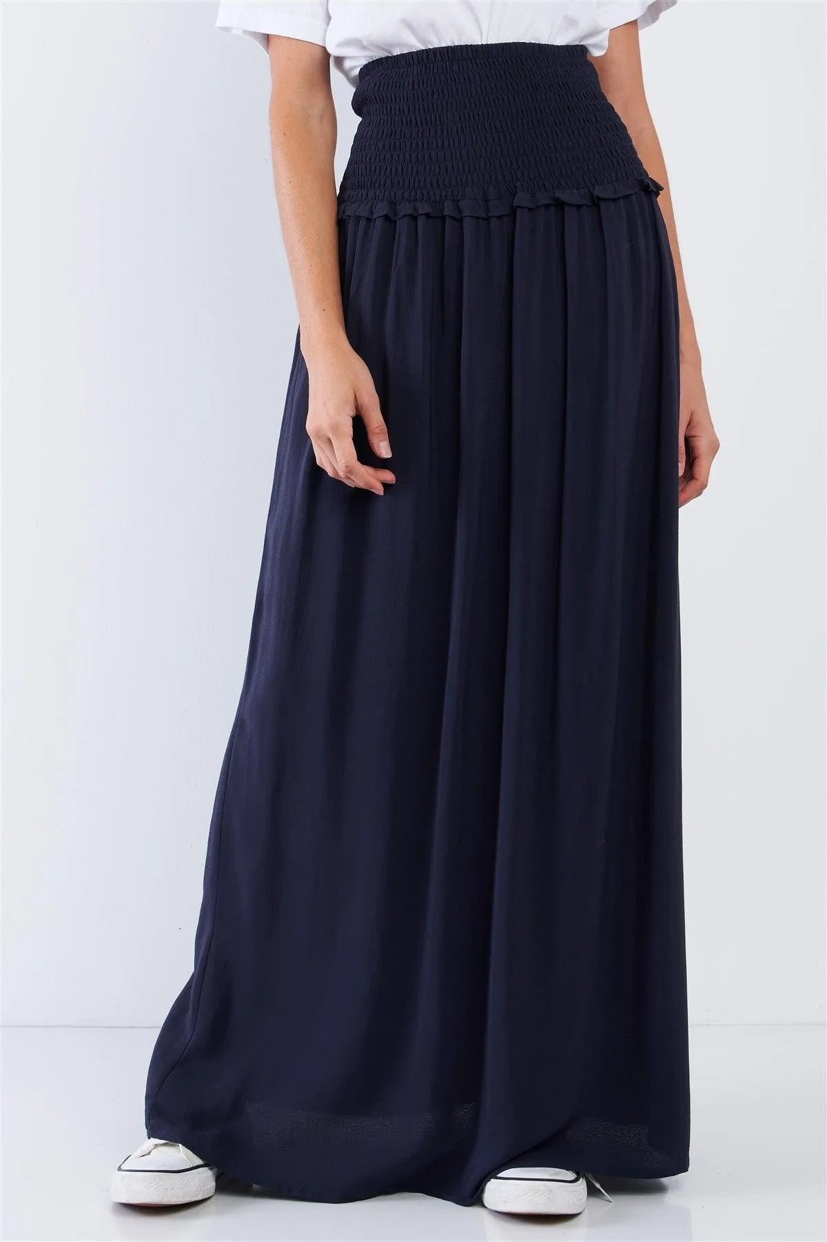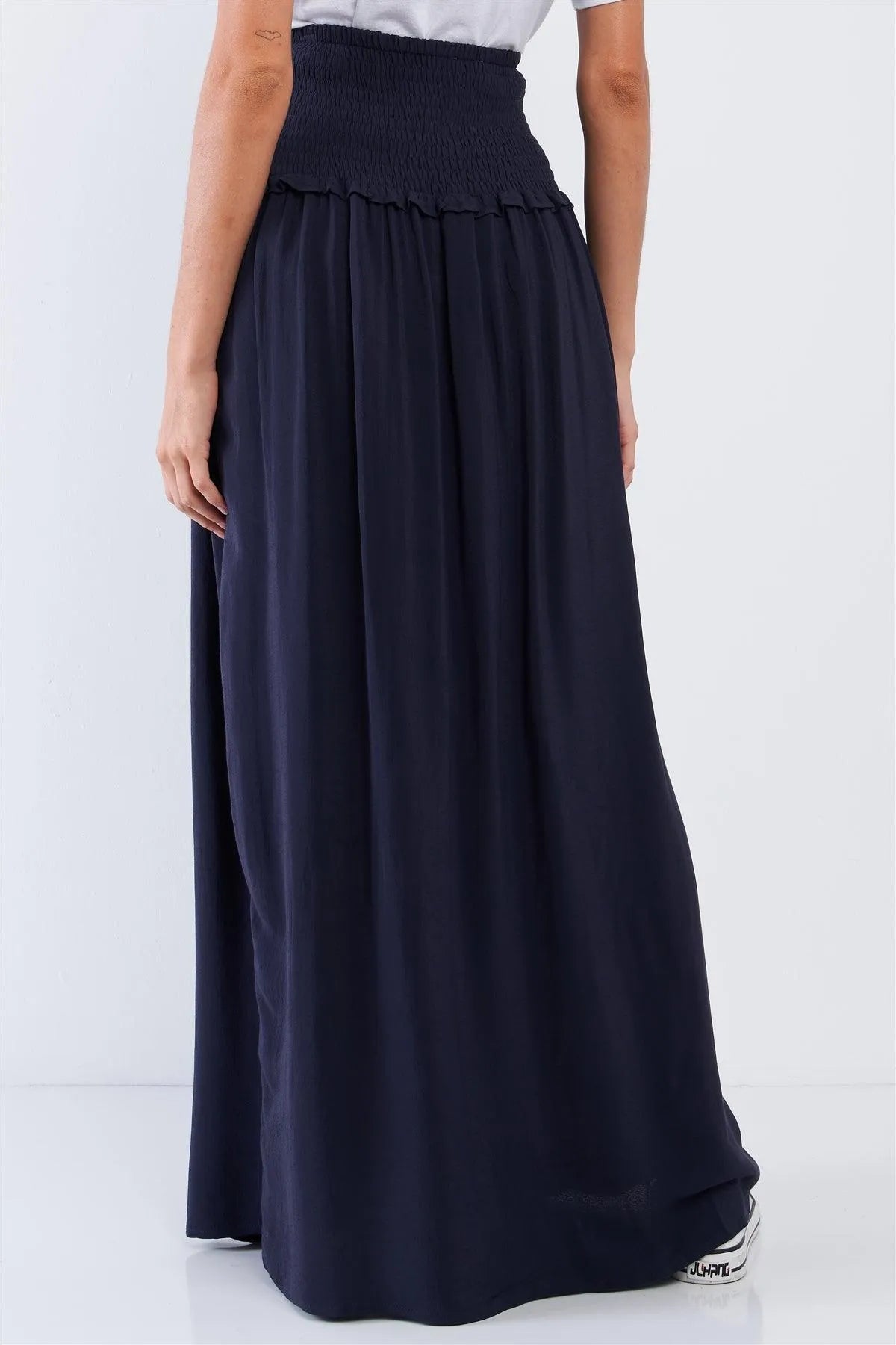 Navy Blue Festival High Waisted Loose Fit Wide Smock Waistline Maxi Skirt