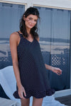 Navy Blue Polka Dot Relaxed Sleeveless Spaghetti Strap V-Neck Ruffle Hem Detail Mini Dress /1-2-2-1