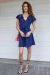 Navy Cotton Blend Flare Back Self-Tie Cape Belted Mini Dress /2-1-2-1
