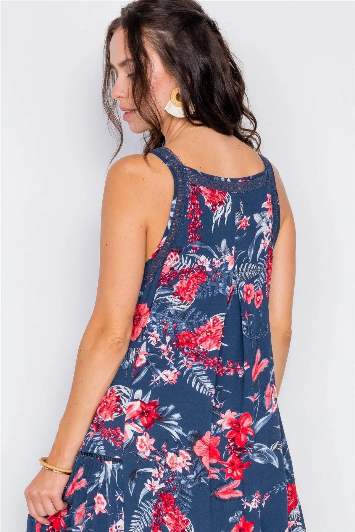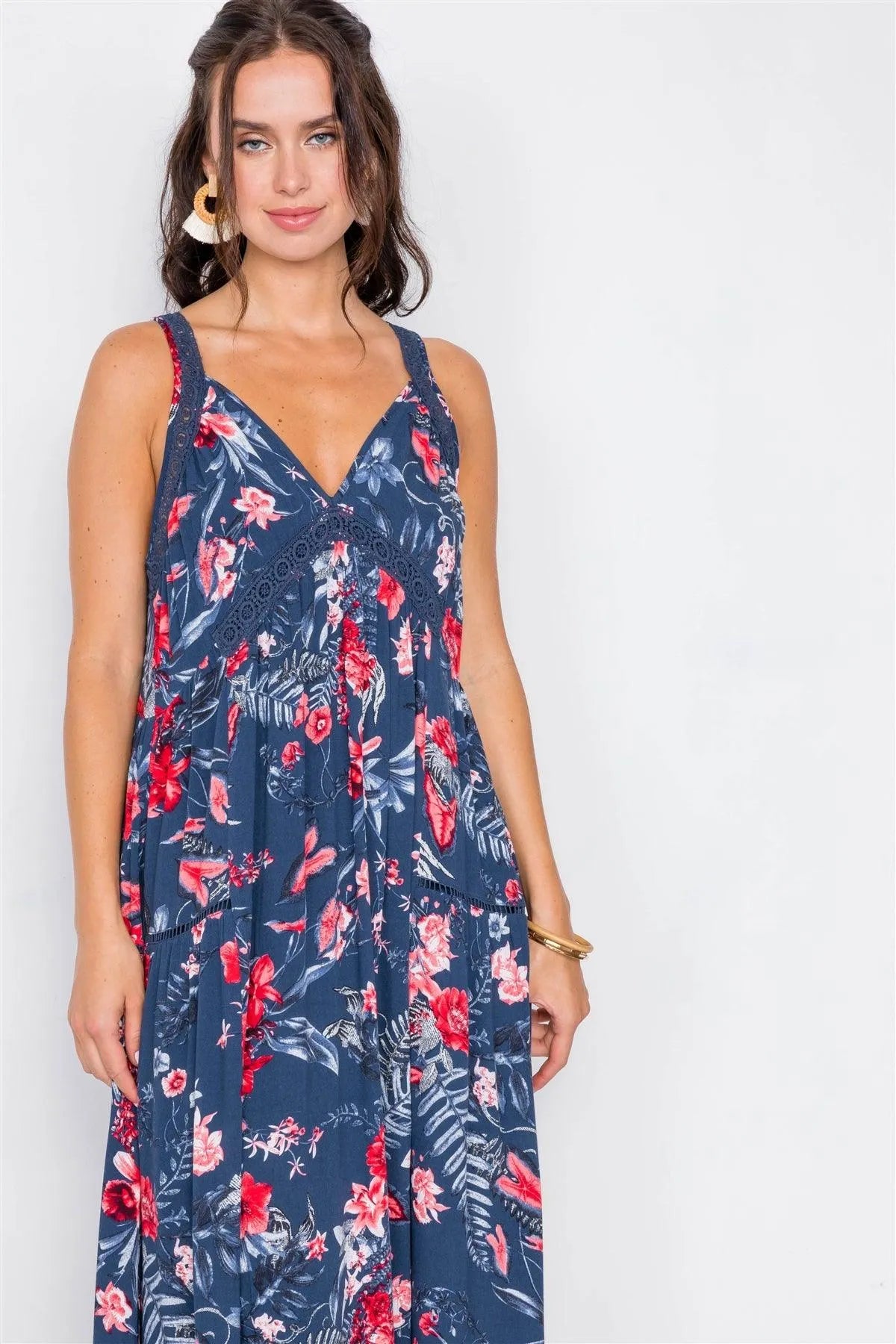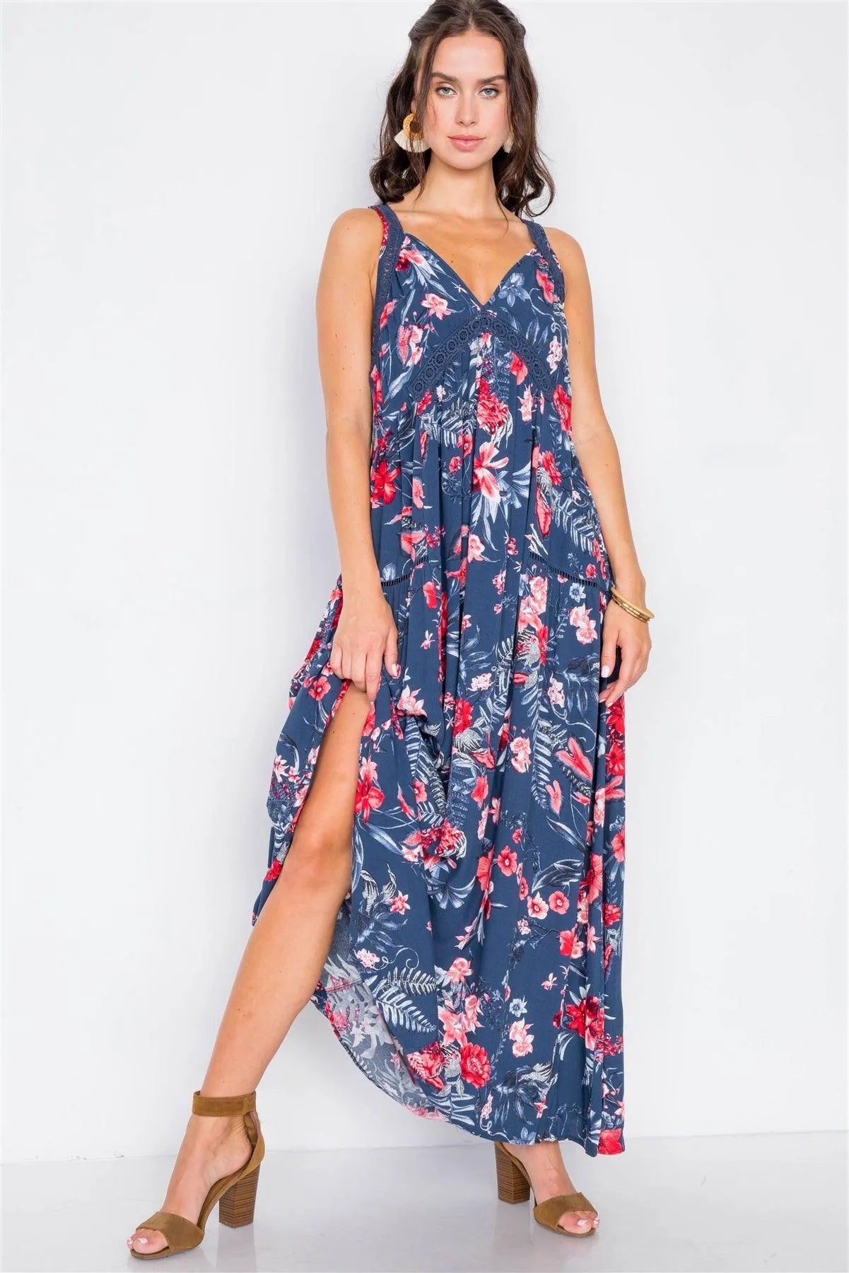 Navy Crochet Floral V-Neck Maxi Dress /2-2-2