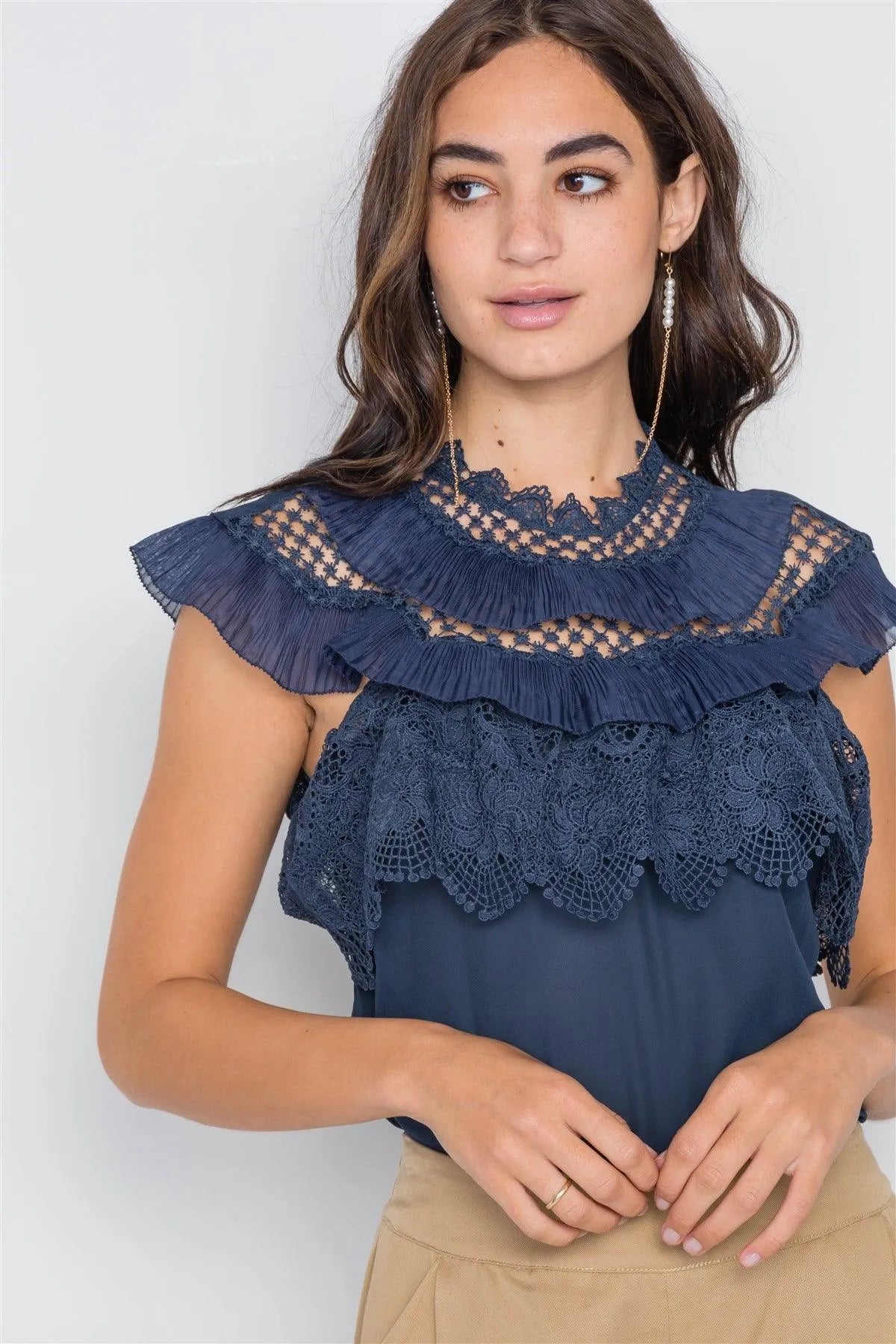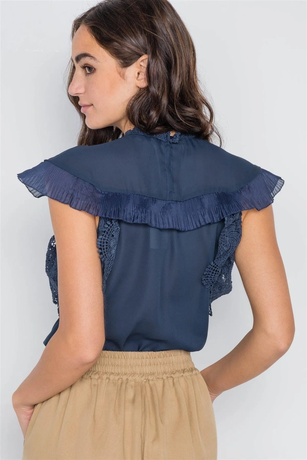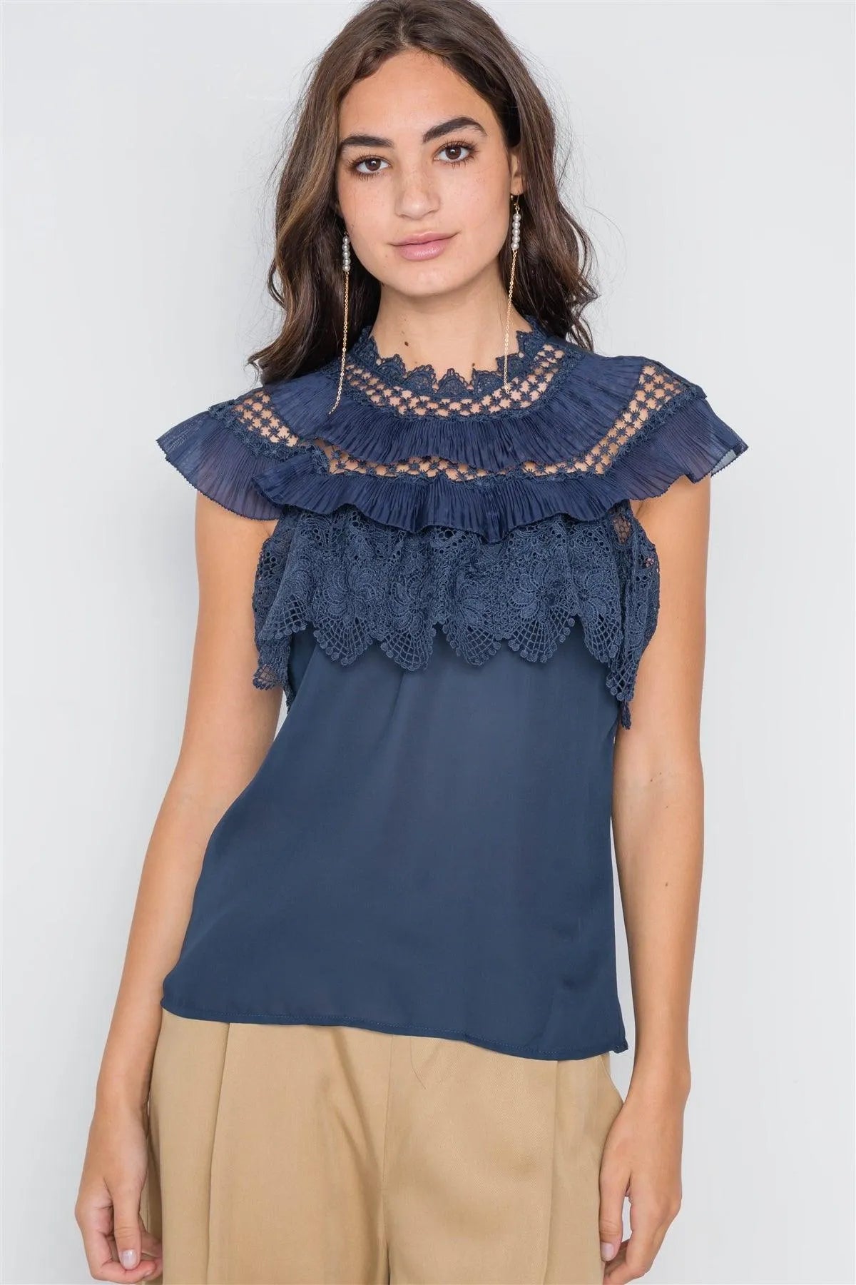 Navy Crochet Trim Sleeveless Top /2-2-2