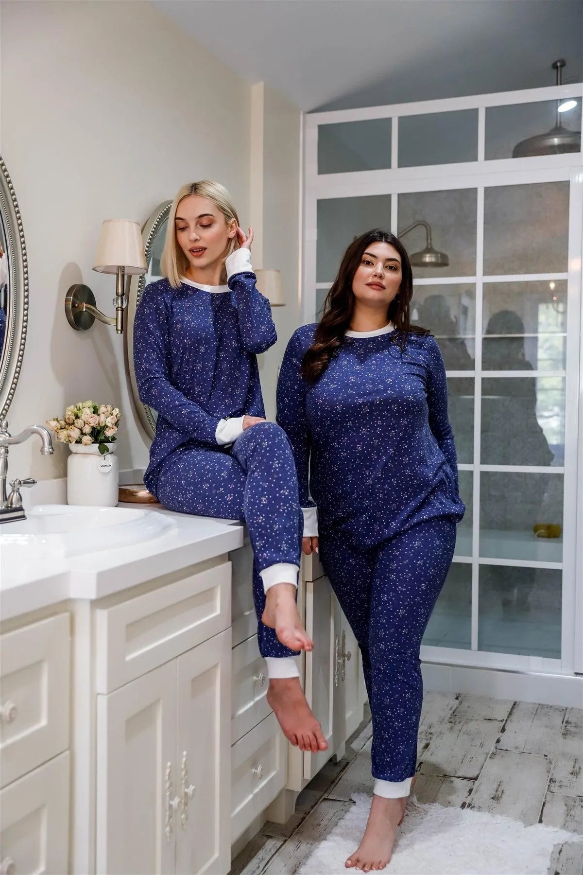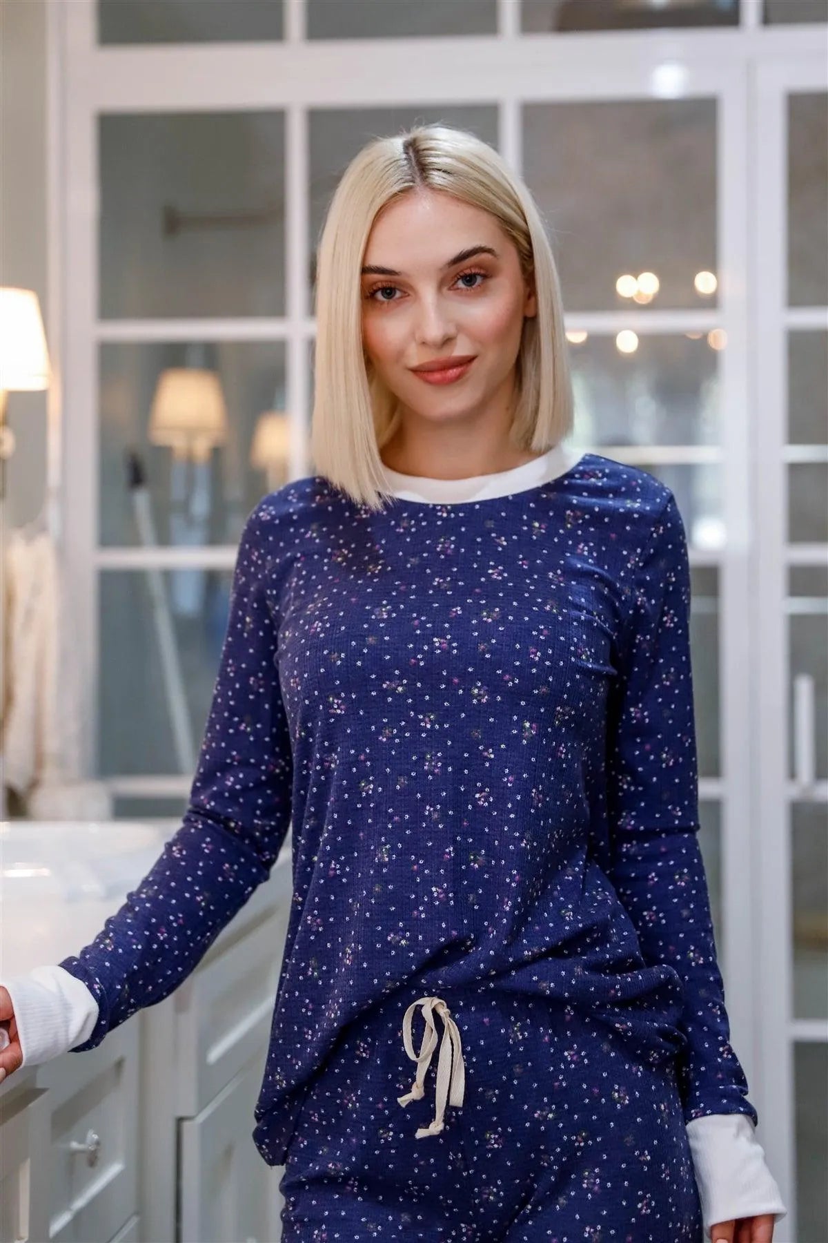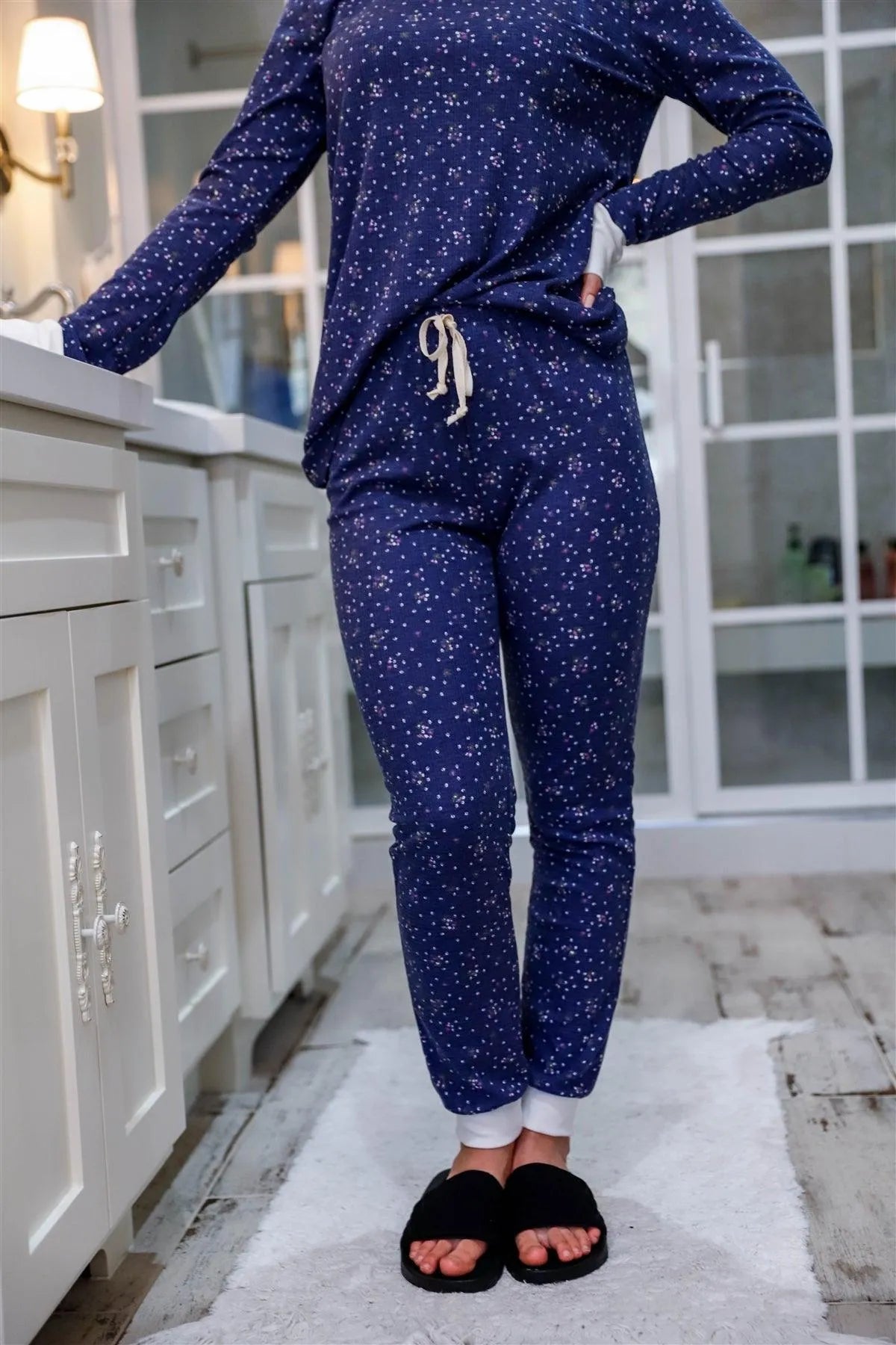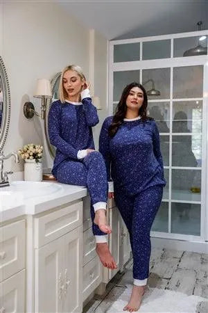 Navy Floral Print Long Sleeve Crewneck & Sweatpants Set