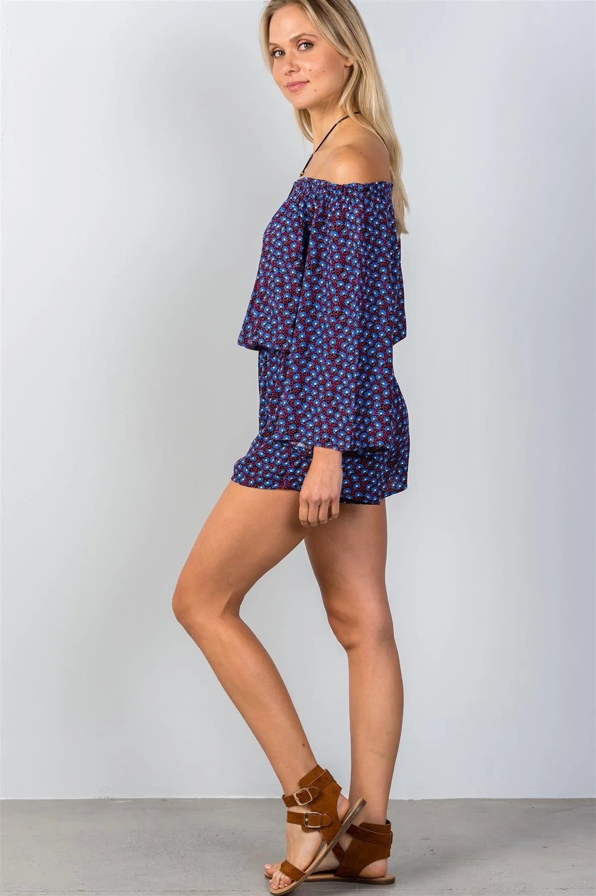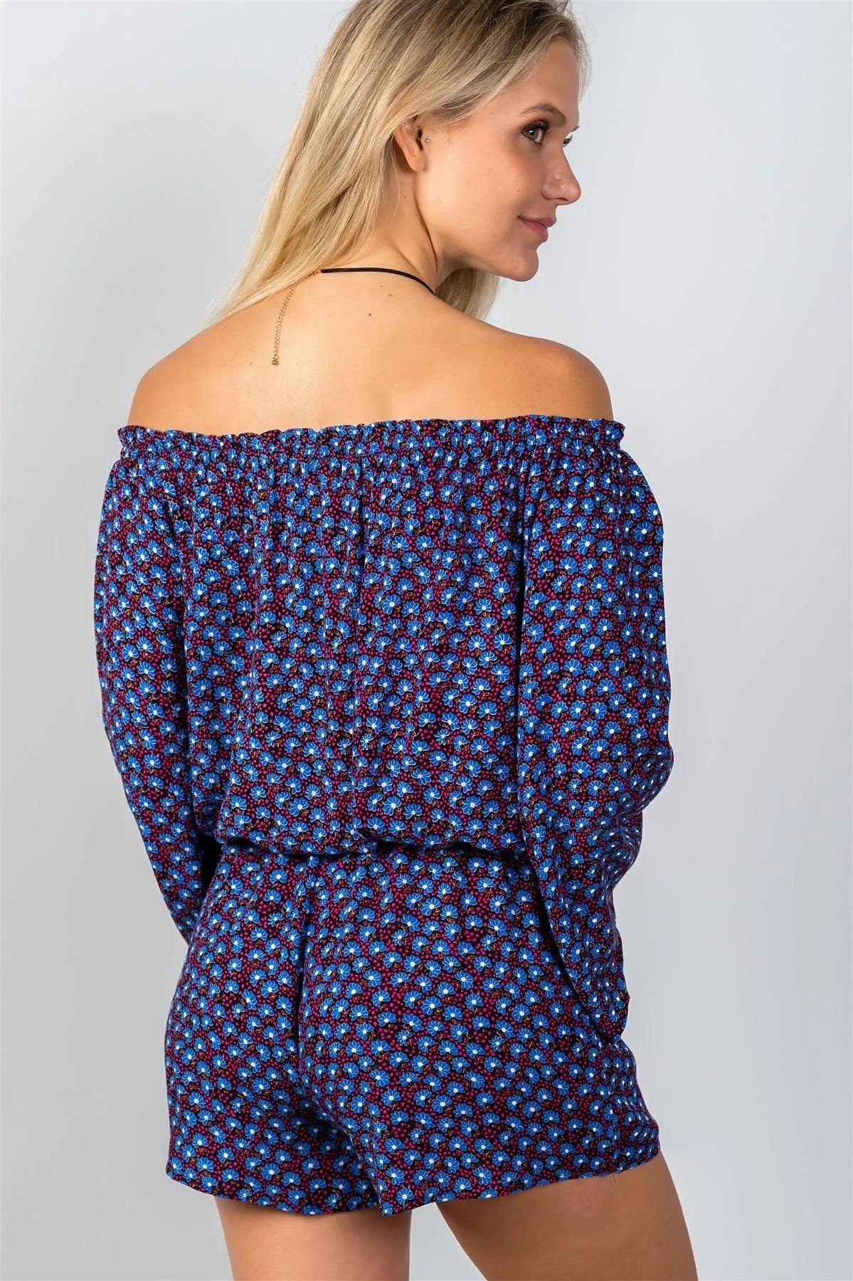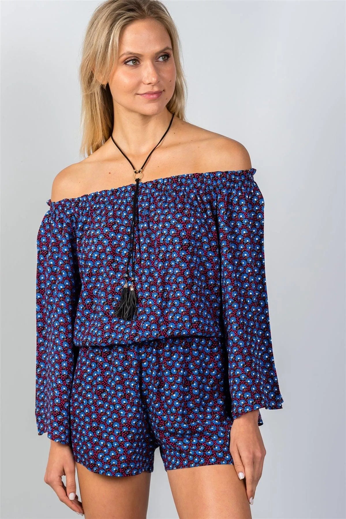 Navy & Floral Print Off-The-Shoulder Romper /2-2-1