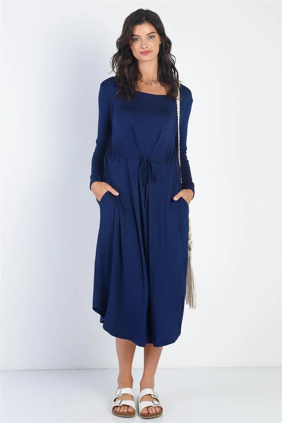 Navy Long Sleeve Basic Midi Maxi Dress /1-1-1