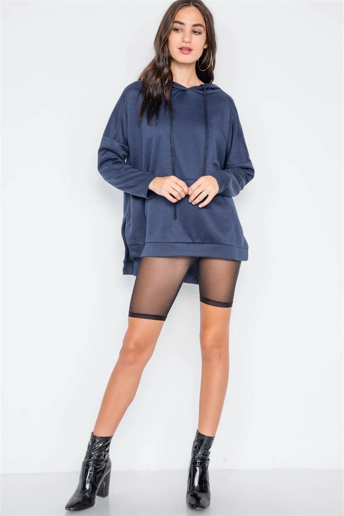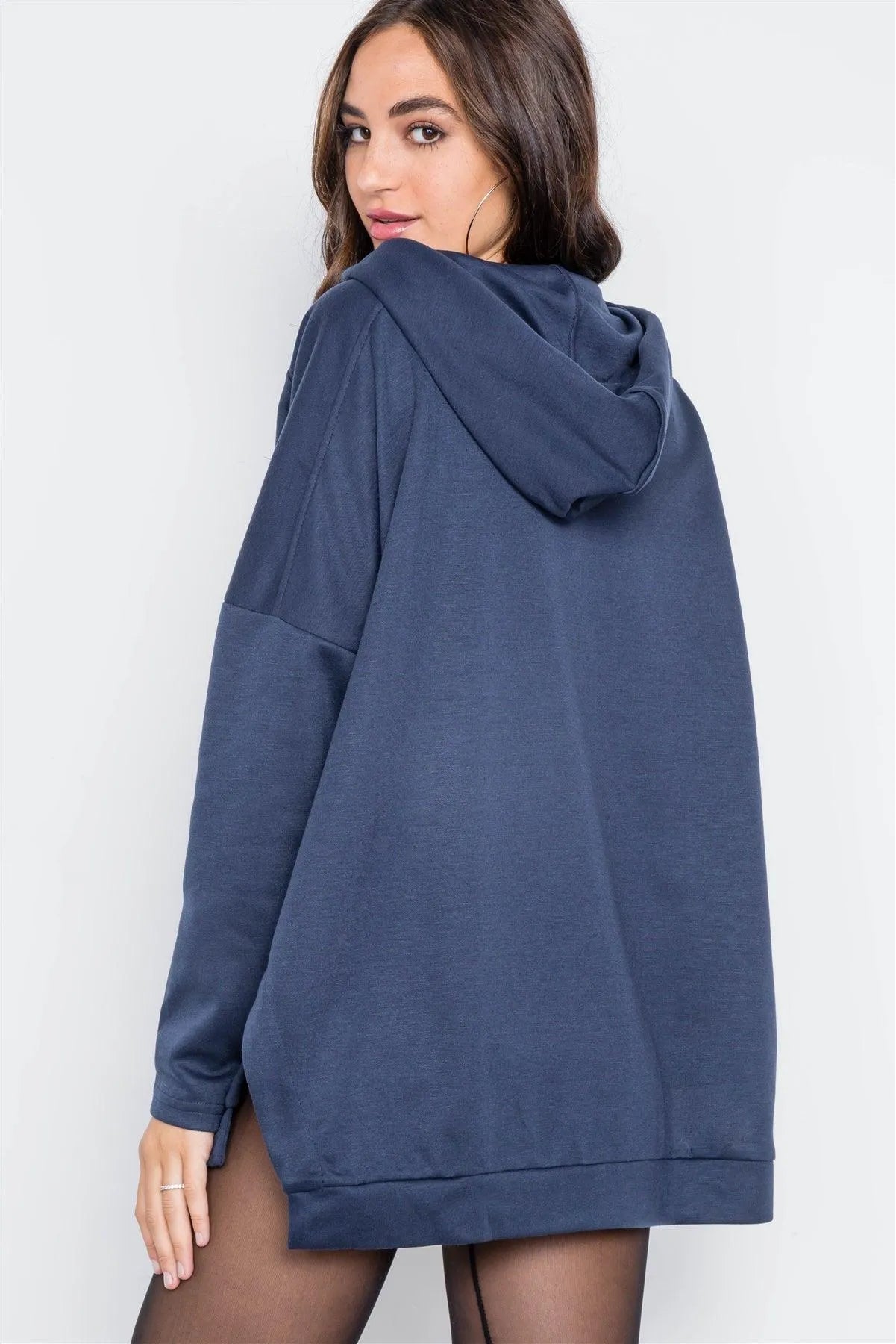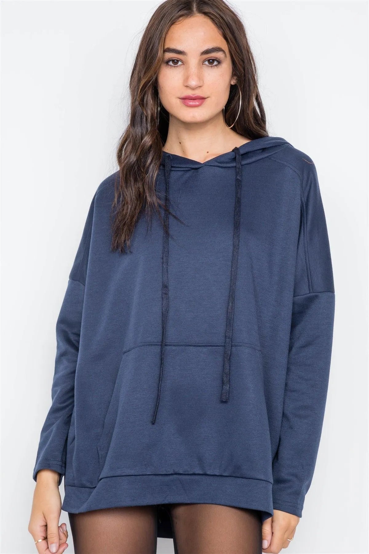 Navy Long Sleeve Solid Hoodie Sweater /2-2-2