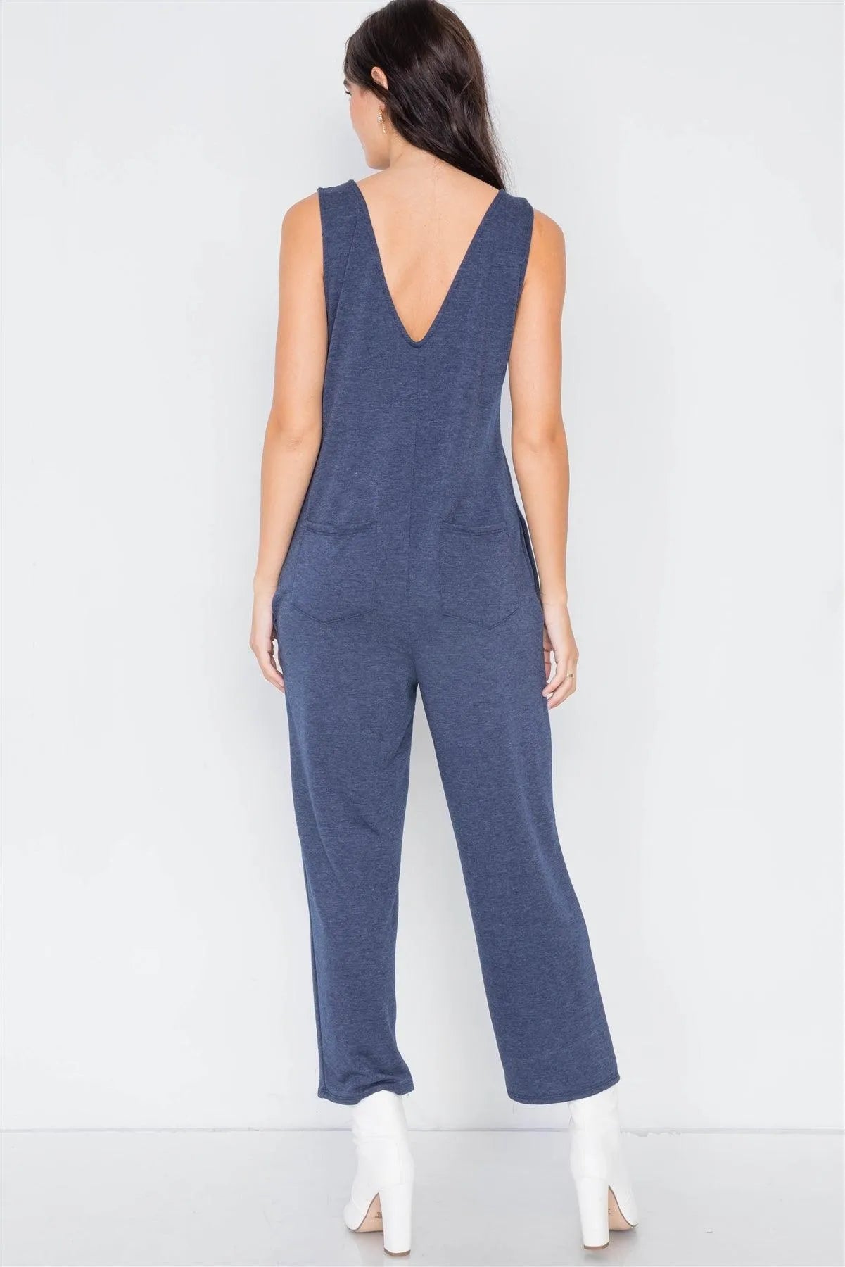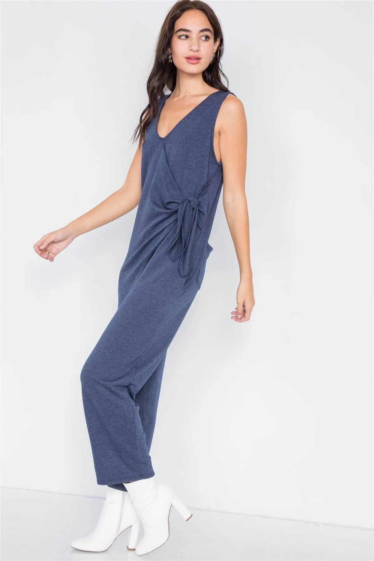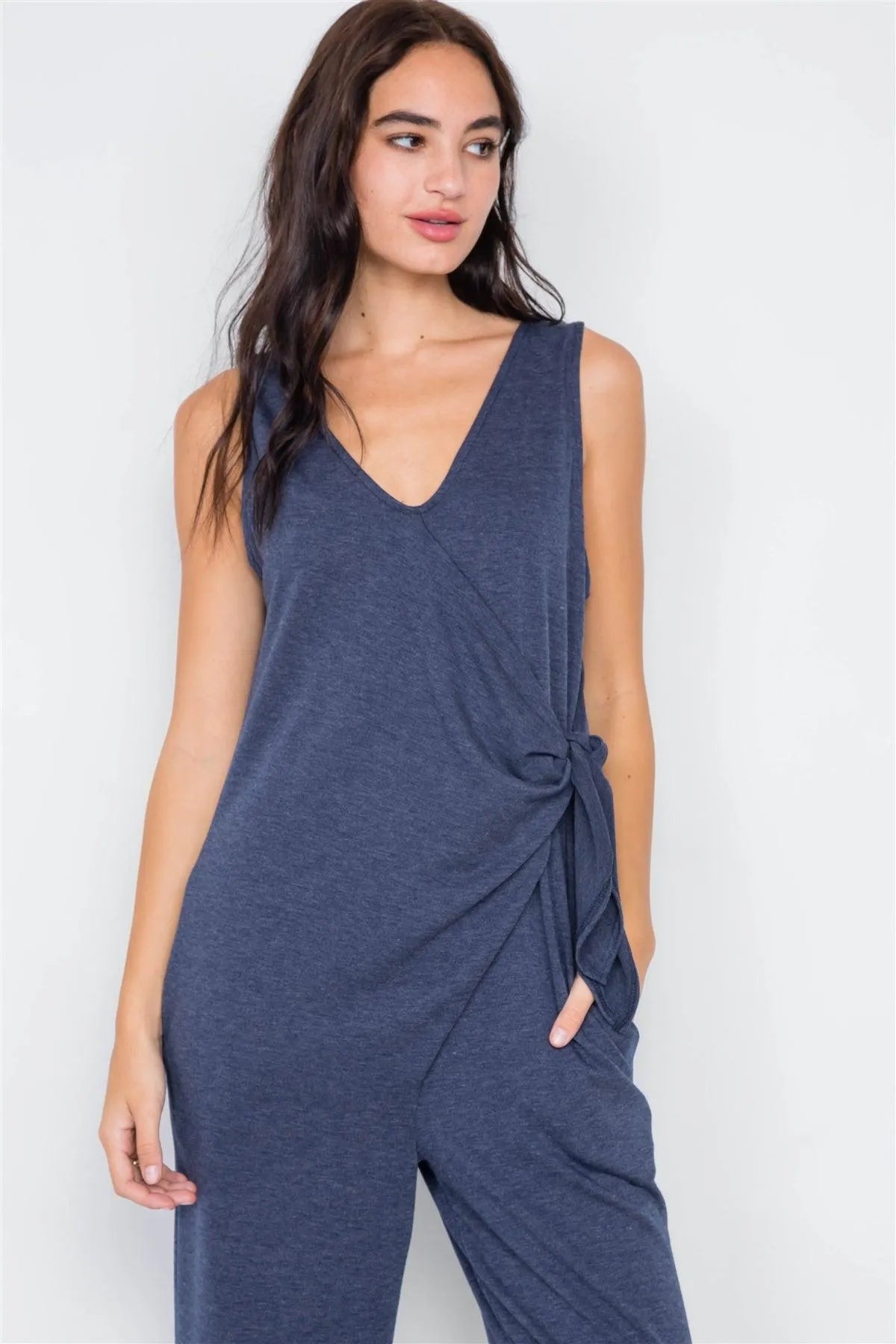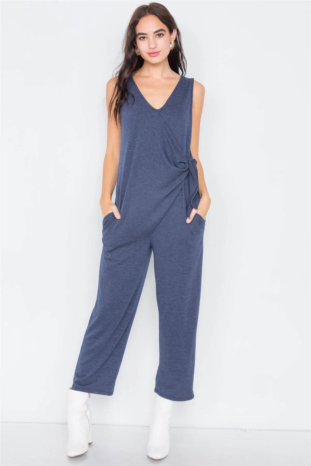 Navy Marled Knit Mock Wrap Ankle Length Jumpsuit /2-2-2