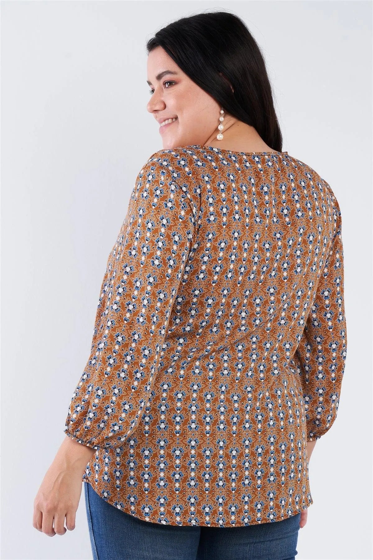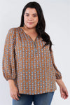 Navy Mustard Multi Print Woven Plus Size Top /2-1-2