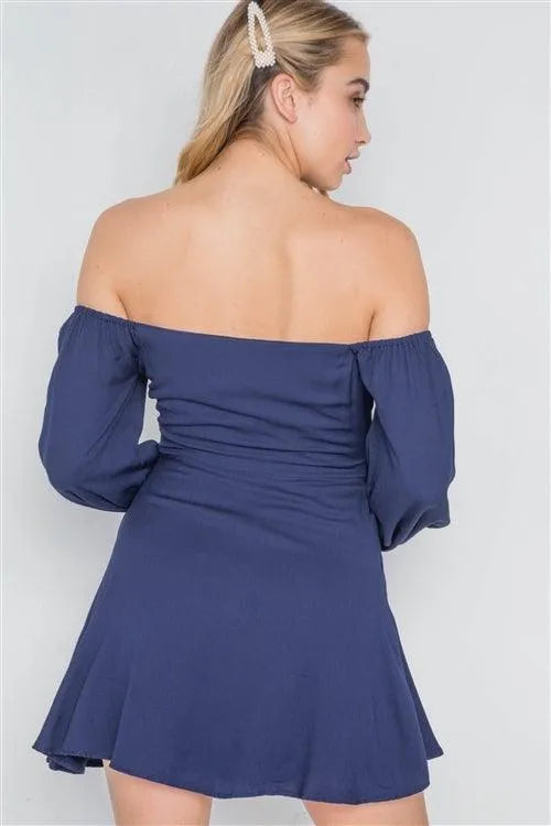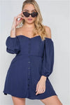 Navy Off-The-Shoulder Button Down Boho Mini Dress /2-2-1