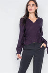 Sheer Long Sleeve Textured Ruched Front Trendy Cropped TopVendor:HYFVE