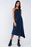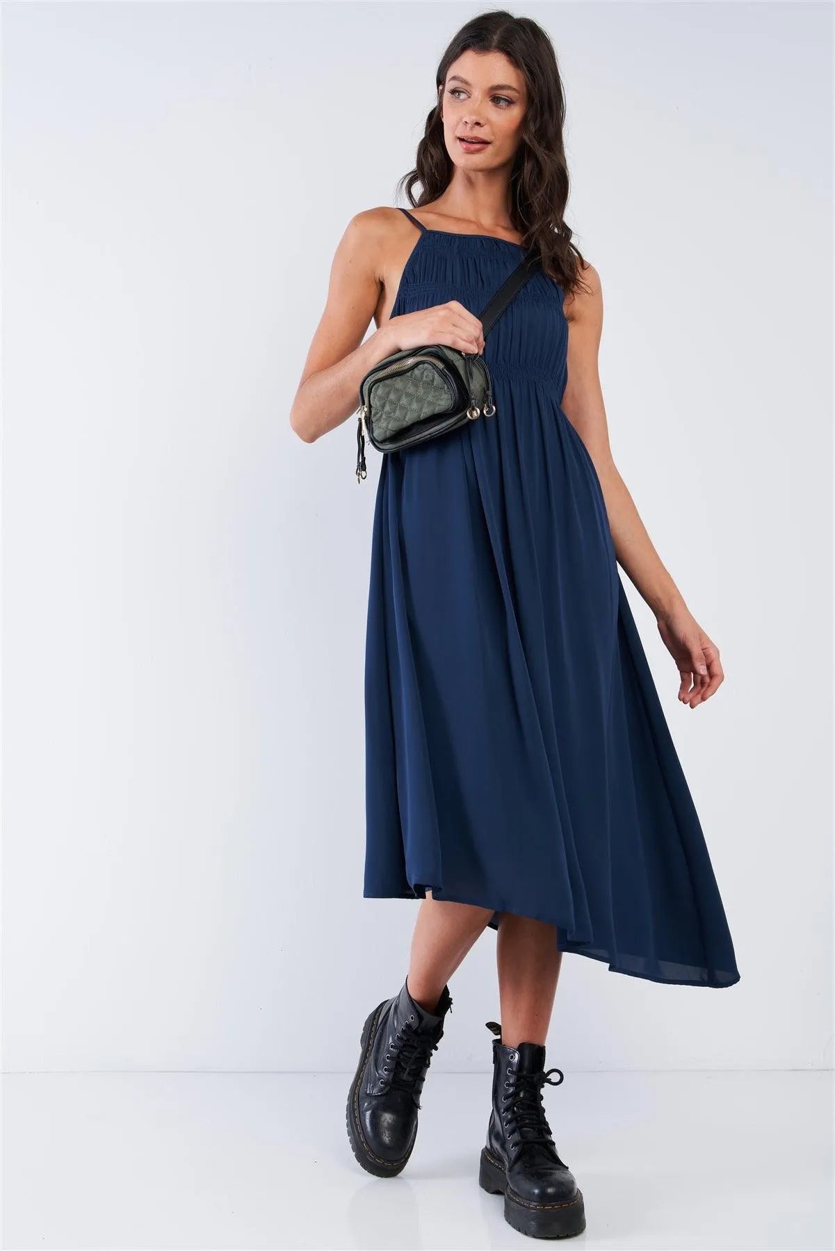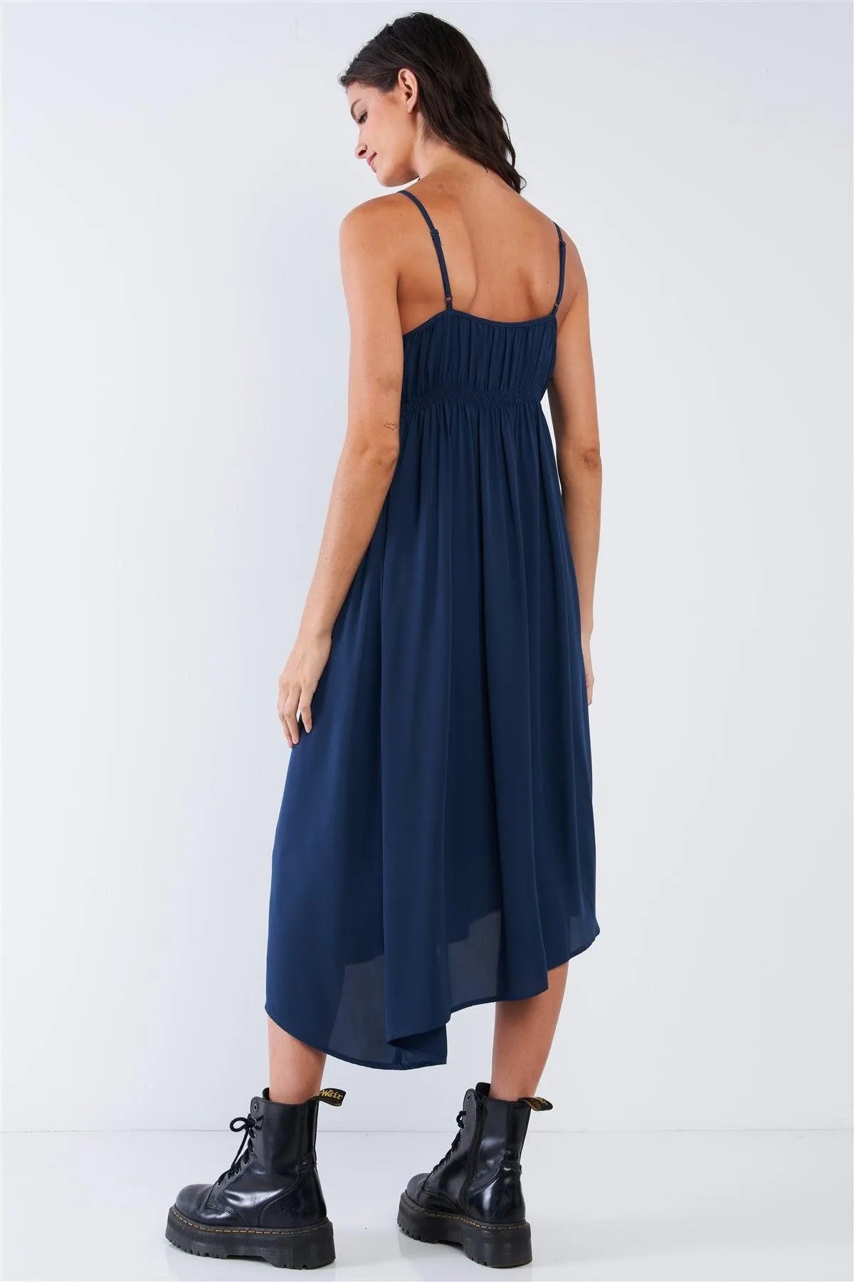 Navy Seal Blue Asymmetrical Square Neck Adjustable Cami Strap Maxi Dress /1-2-3