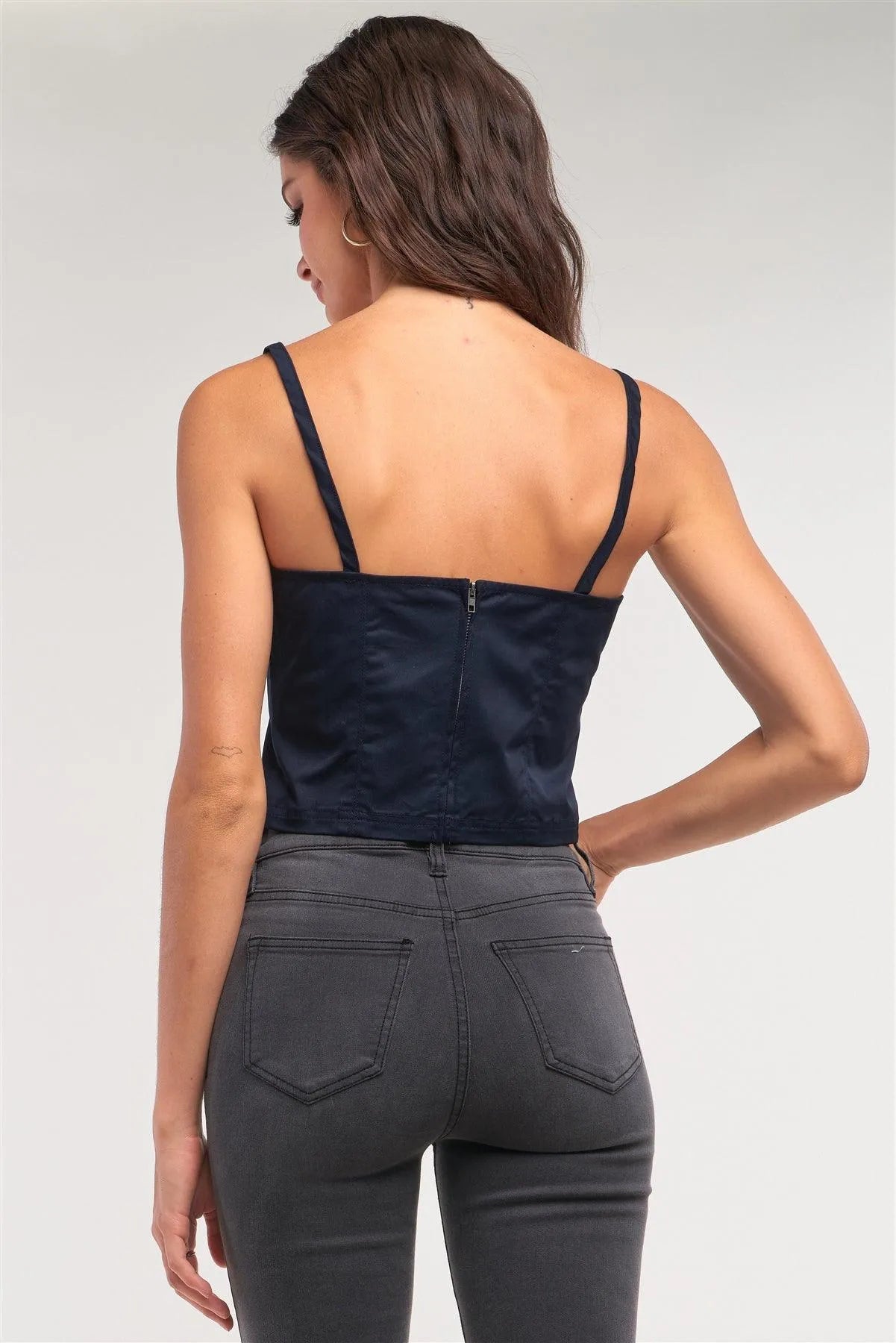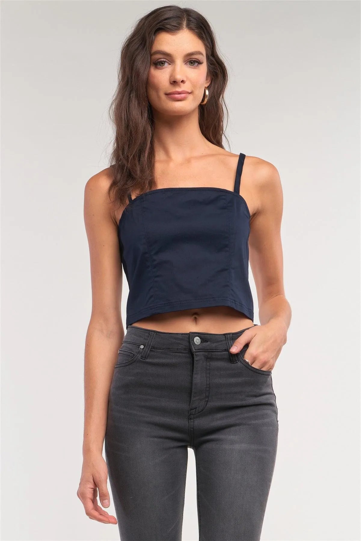 Navy Sleeveless Square Neck Back Zipper Closure Cropped Top /1-3-1