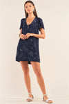 Star Print Loose Fit Deep Plunge V-Neck Mini Dress