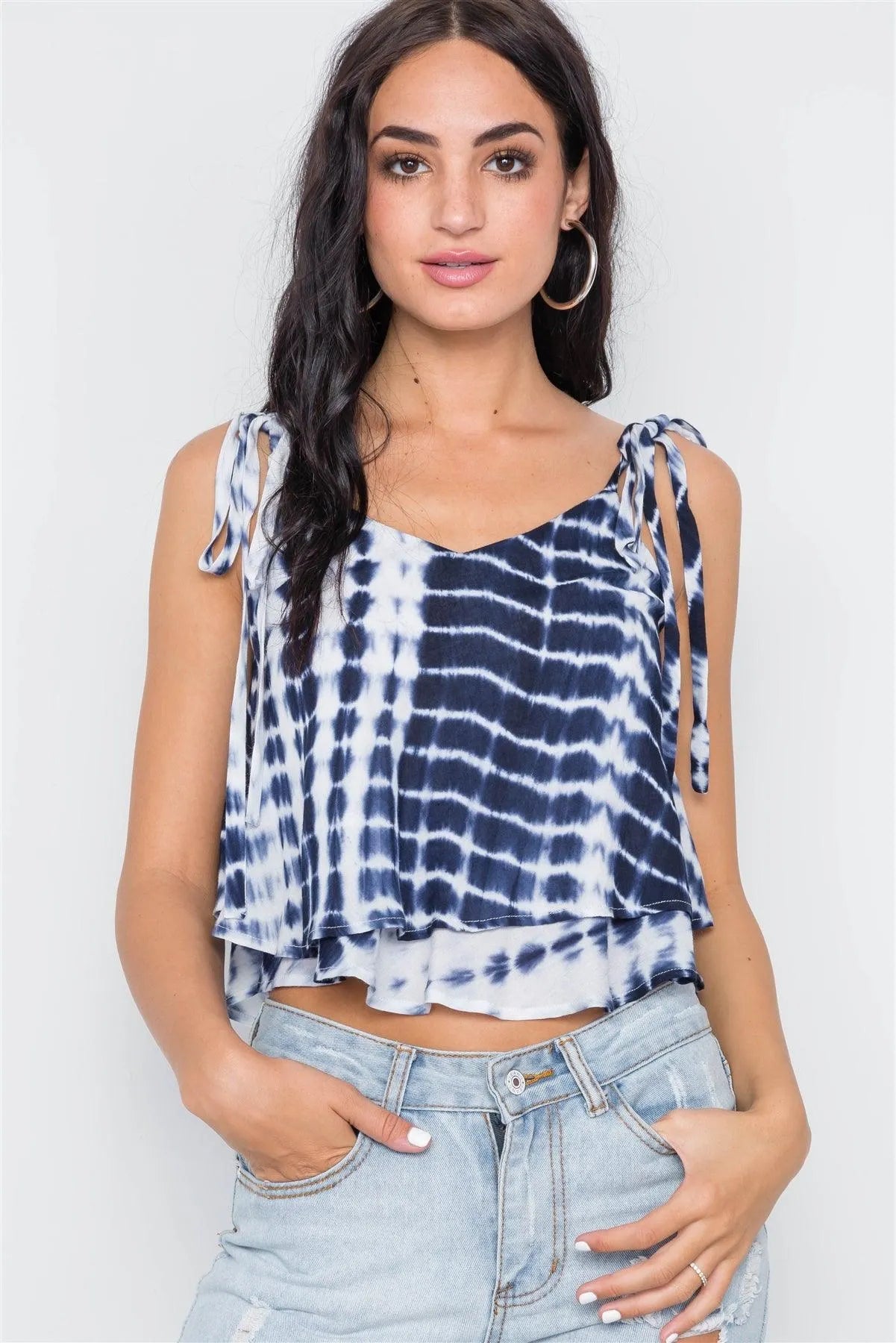 Navy Tie Dye Self Tie Cami Straps Crop Top Top /2-2-1