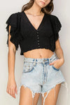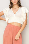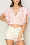 Smocked Long Sleeve Sheer Crop Top Trendy Boutique Fashion TopVendor:HYFVE
