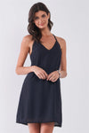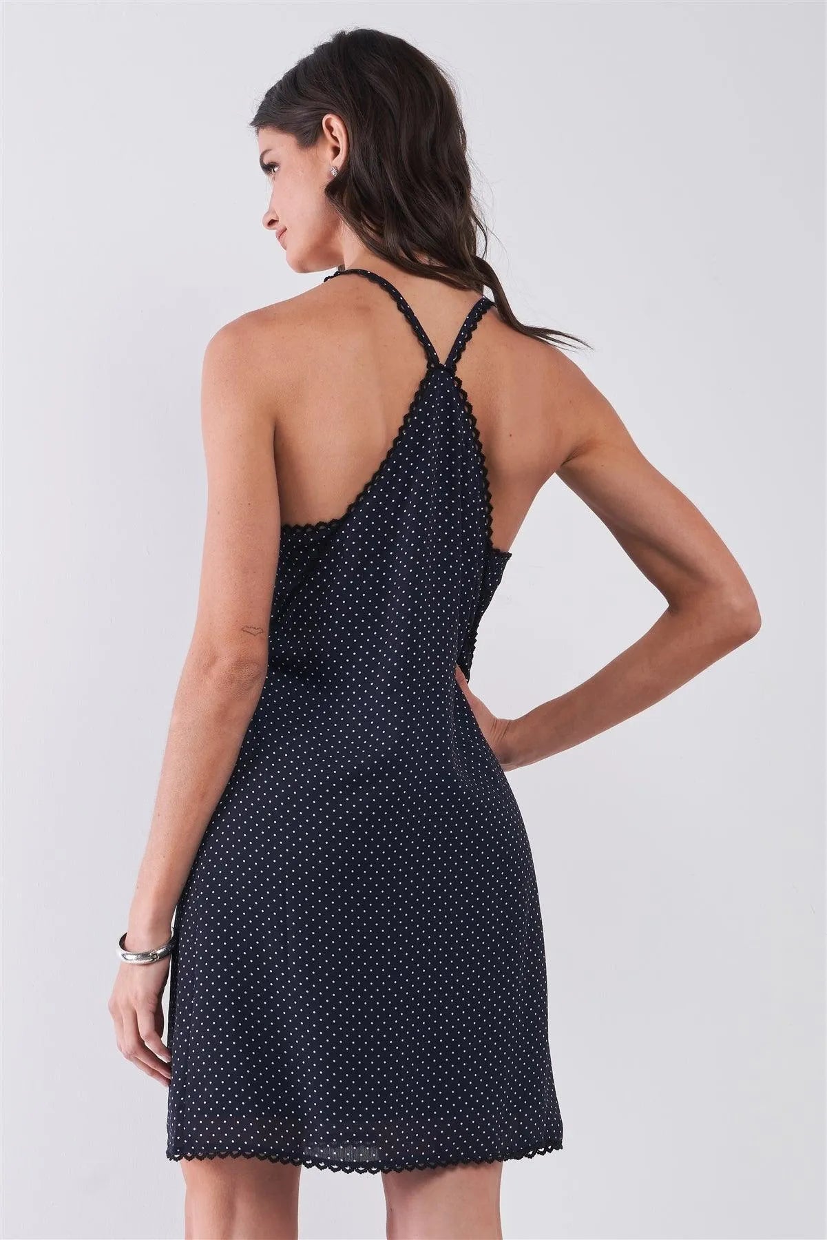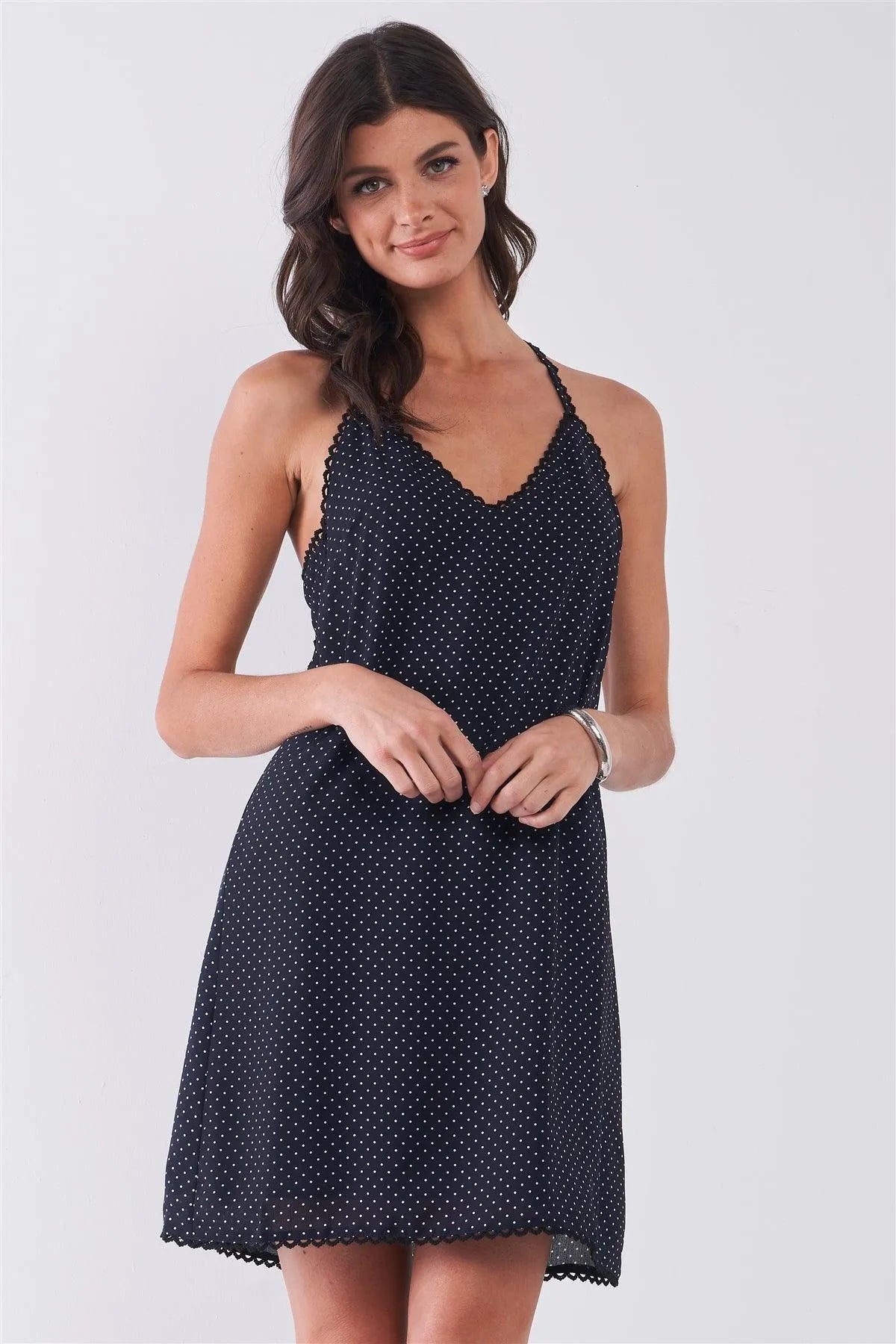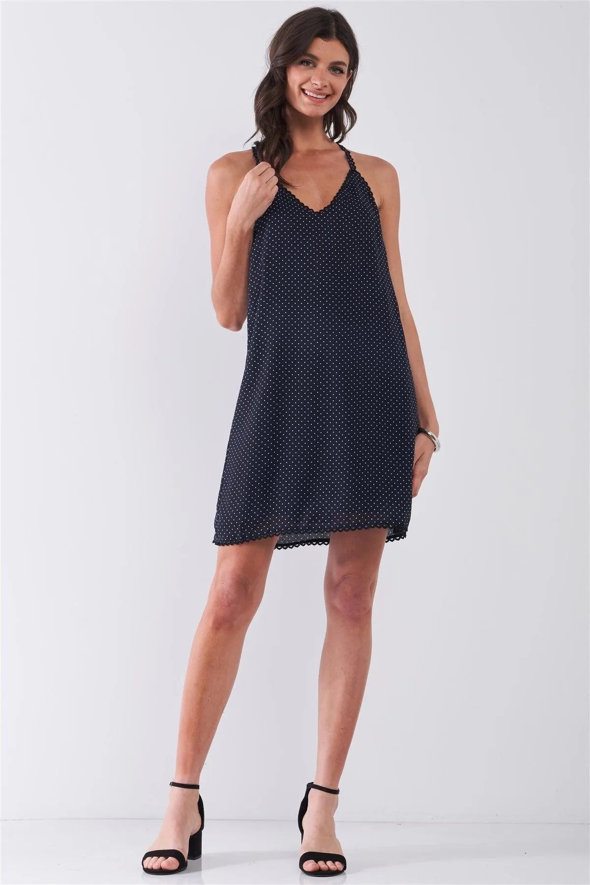 Navy & White Polka Dot Sleeveless V-Neck Racer Back Detail Relaxed Mini Dress /1-2-2-1