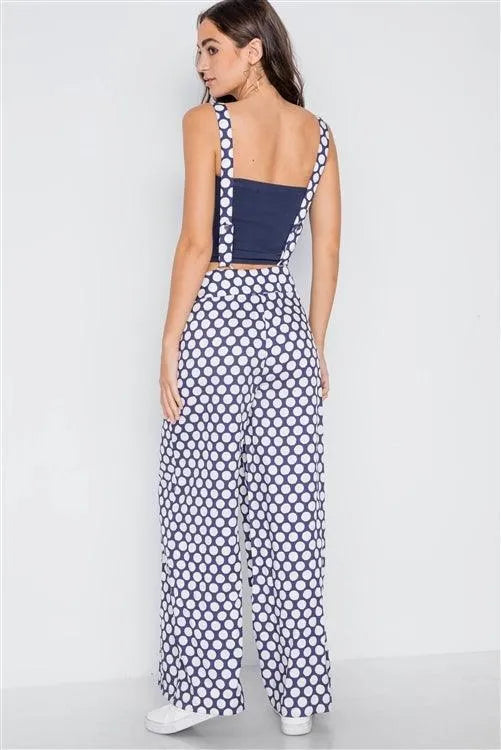 Navy White Polka Dot Wide Leg Suspender Pants /1-2-2
