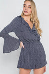Navy White Surplice Neck Long Sleeve Romper /2-2-2
