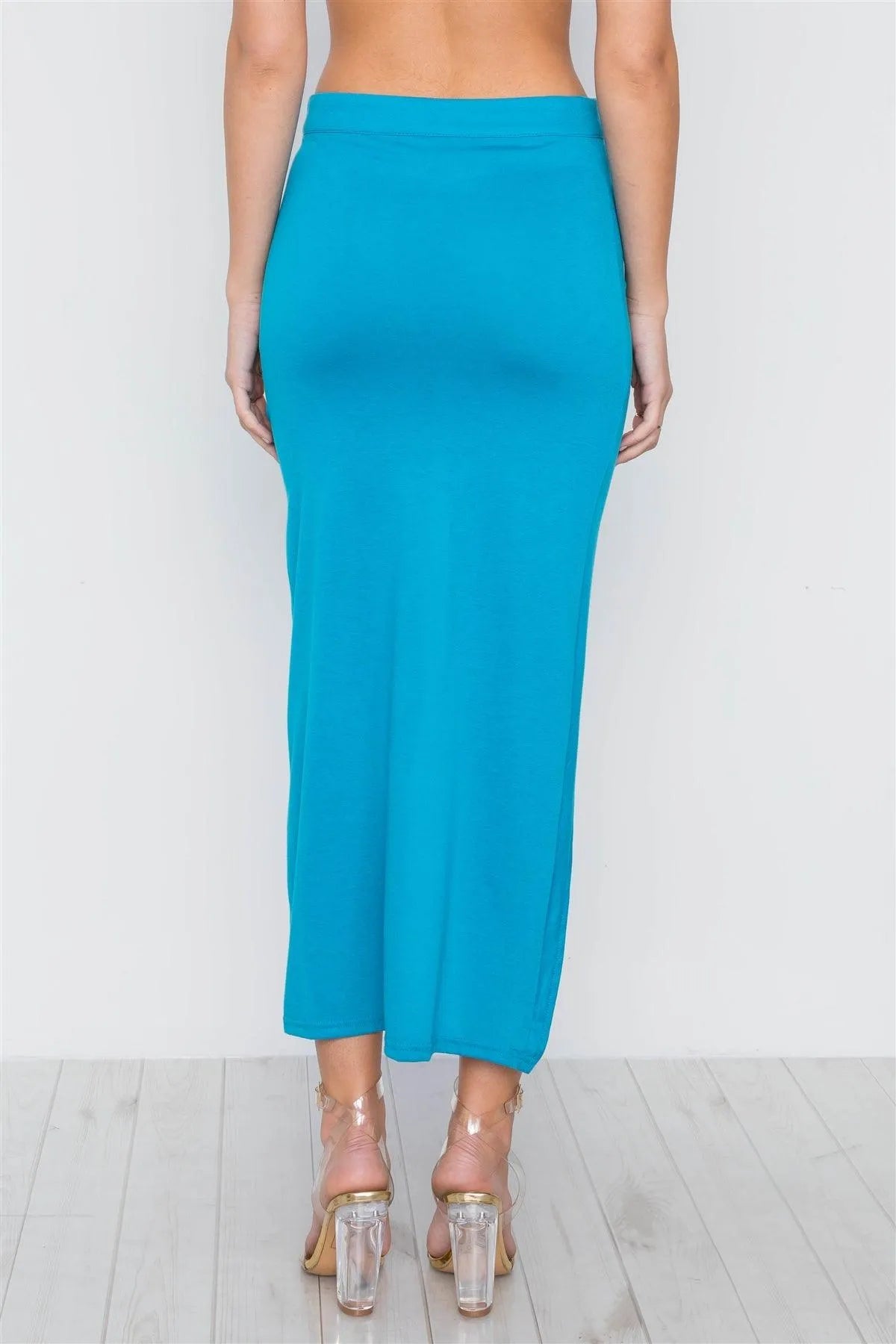 Neon Blue Solid Open Side Ruffle Maxi Skirt /3-2-1