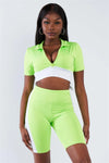 Neon Green & White Contrast Trim Crop Pull Over & Mini Biker Short Set /3-2-1