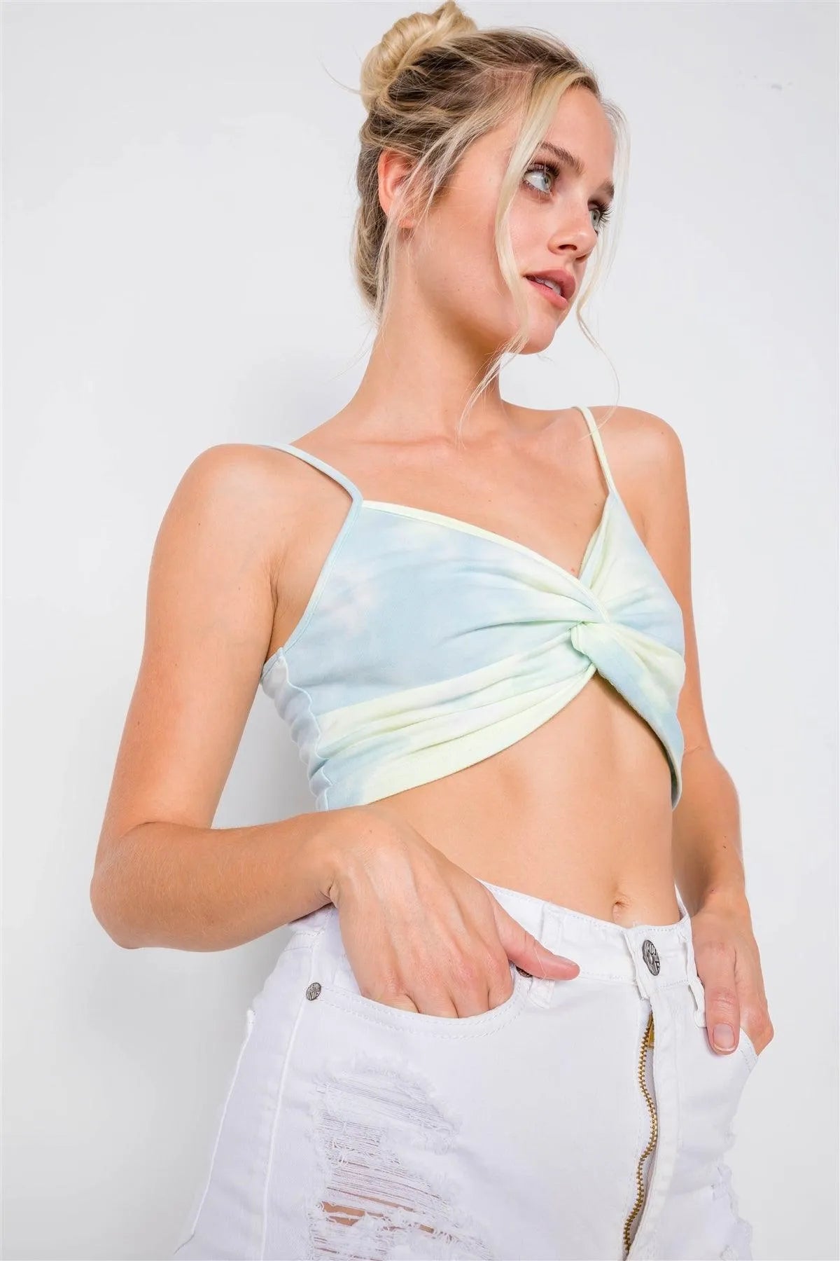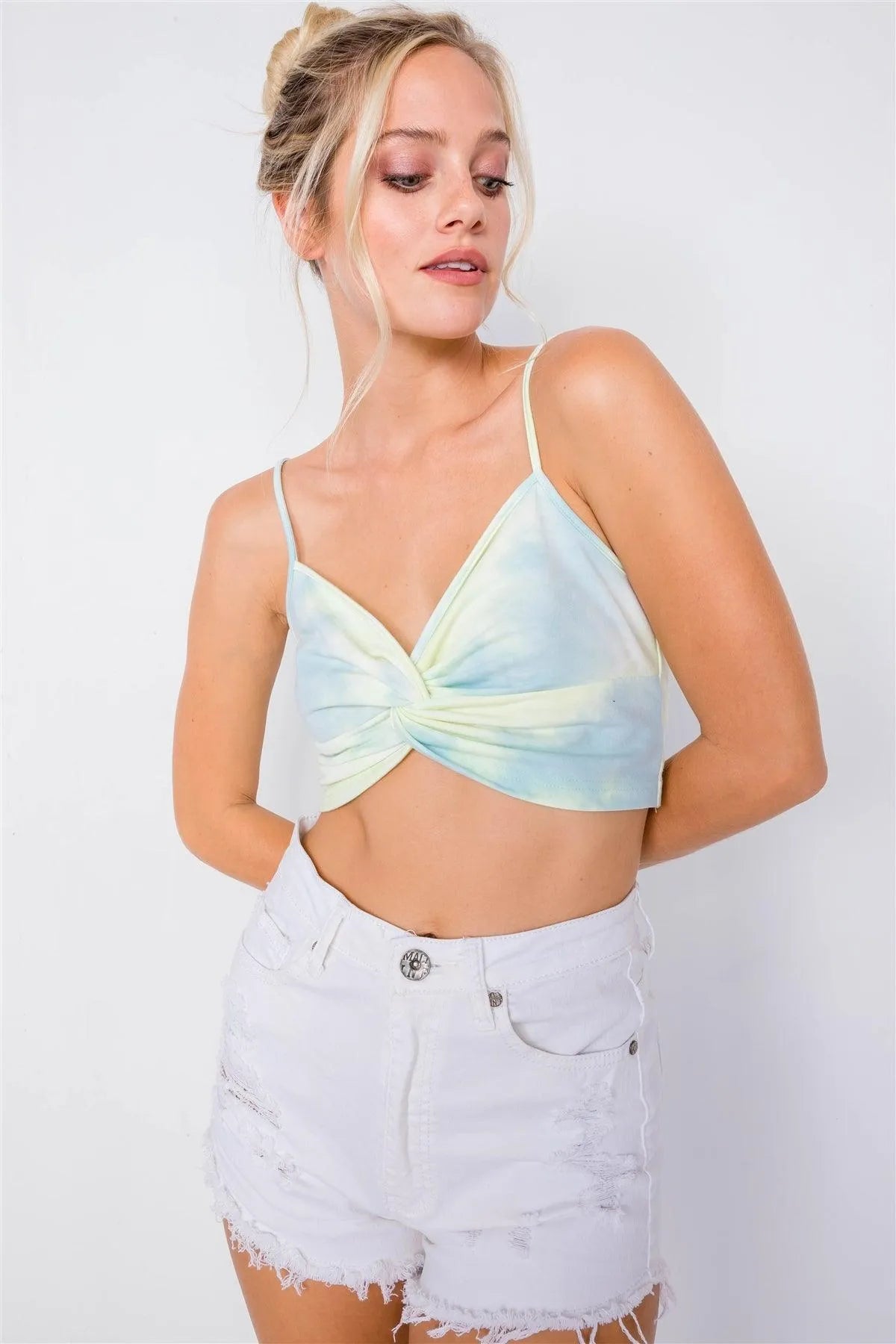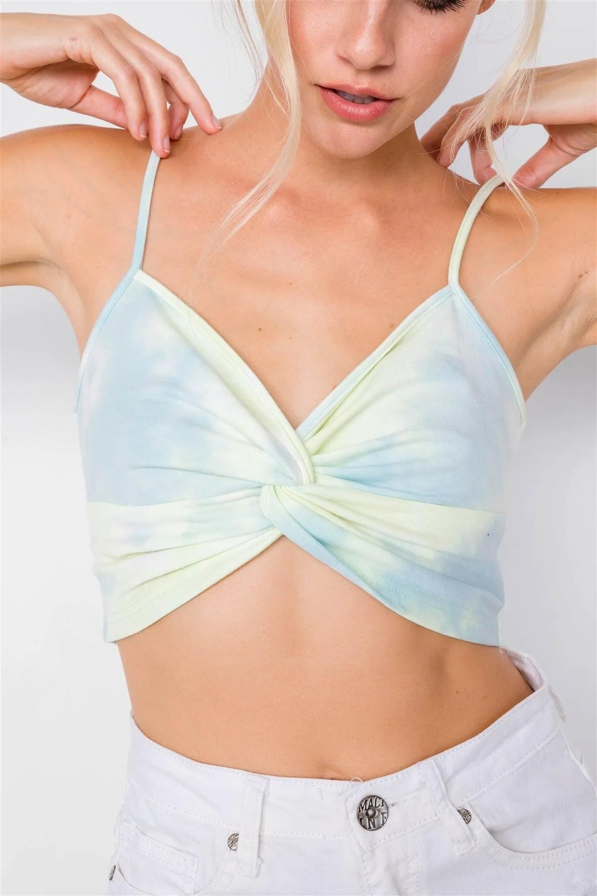Neon Mint Tie Dye Front Twist Crop Top /3-2-1
