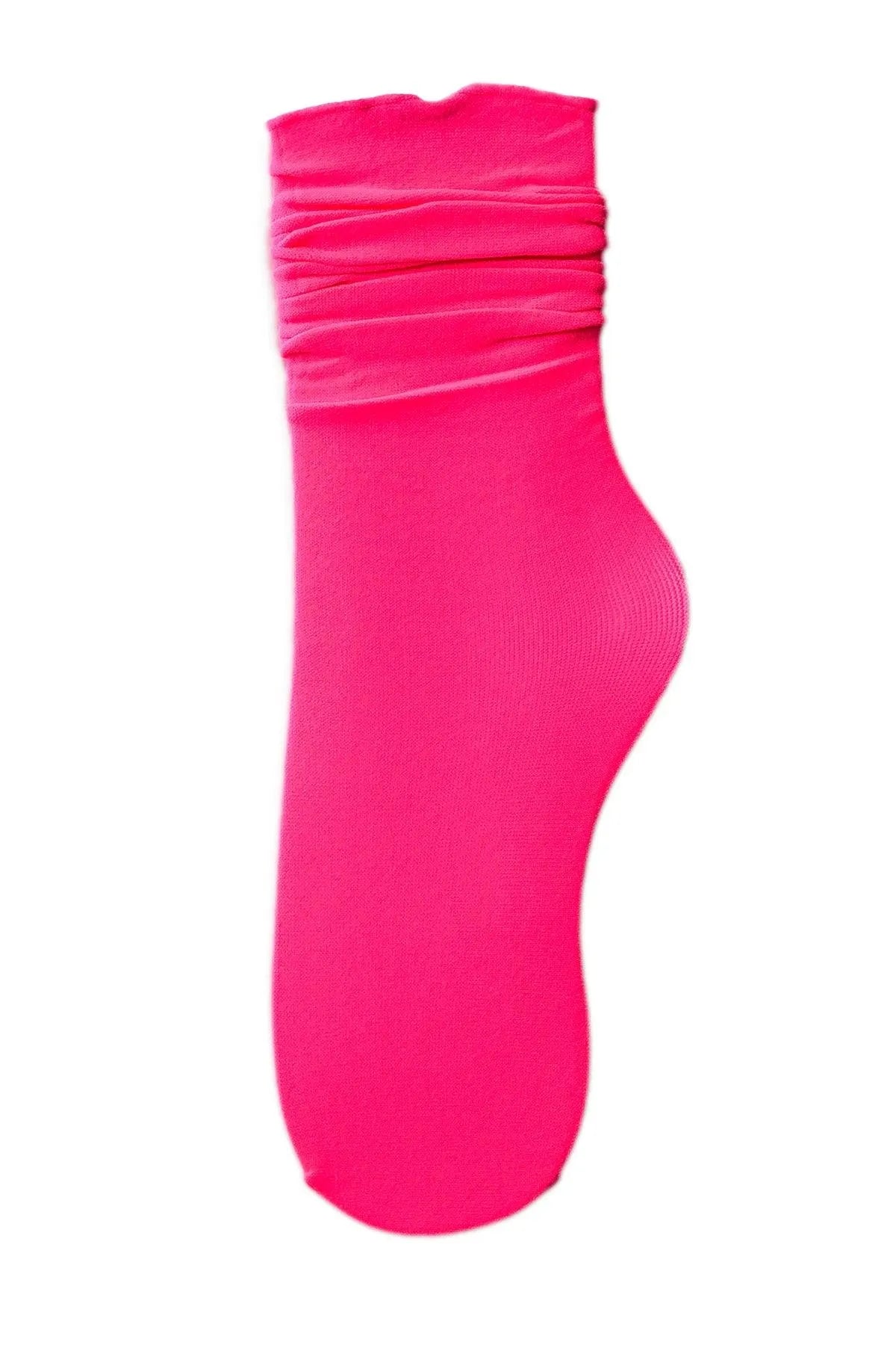 Sock features: ruffle trim, mid calf, midi length, sheer, nylon, dress sock, accessories, neon, very stretchy.Item Measurements: Length: 16"One Size Also available in Neon Orange & Neon Yellow