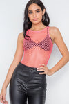 Neon Pink Net Sleeveless Round Neck Bodysuit /3-2-1