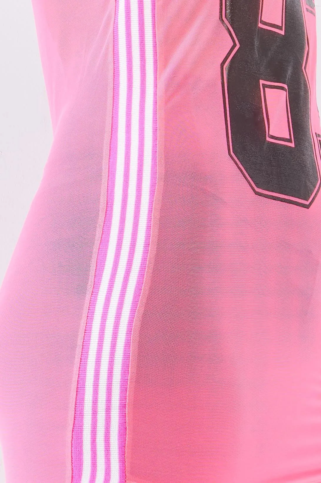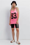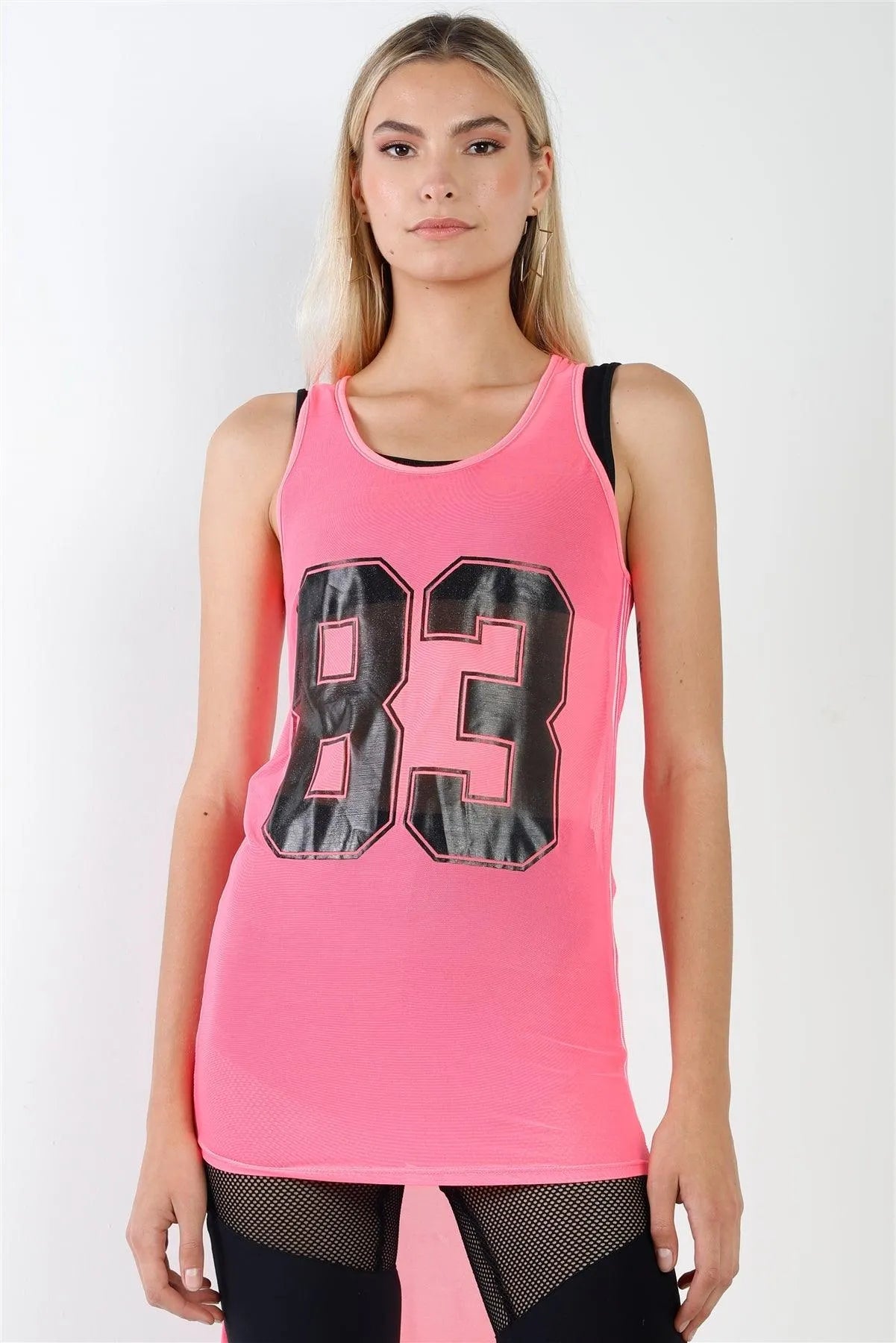 Neon Pink Sheer Sleeveless Large Print Detail Tennis Top /1-2-2-1