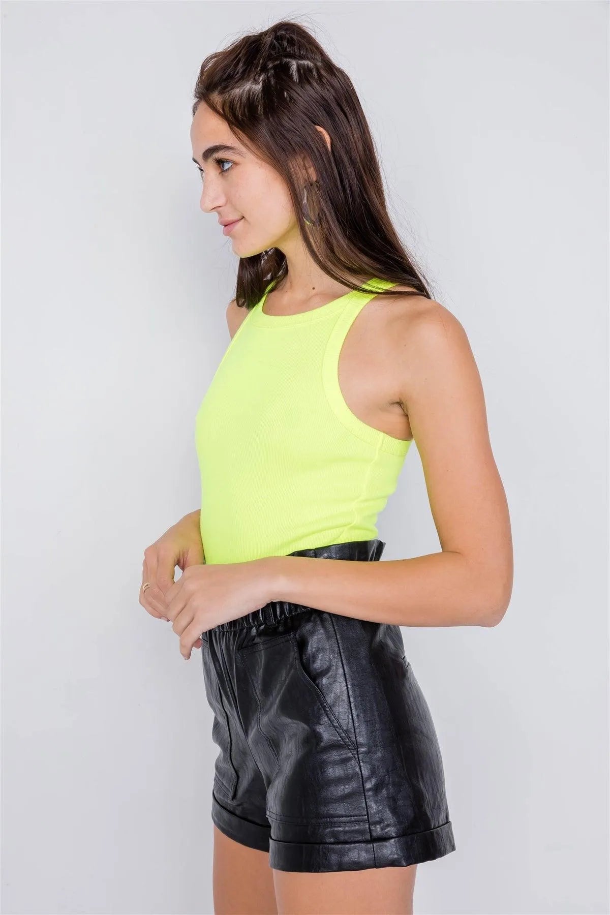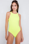 Neon Yellow Ribbed Solid Casual Cotton Bodysuit /3-2-1