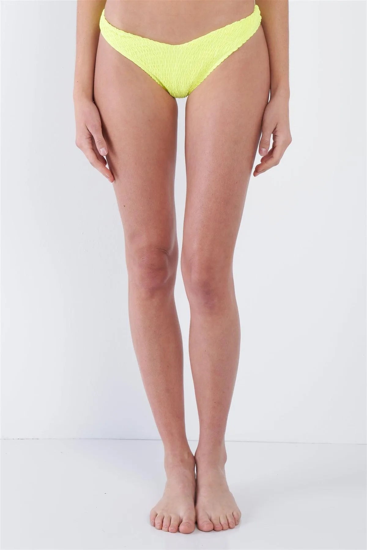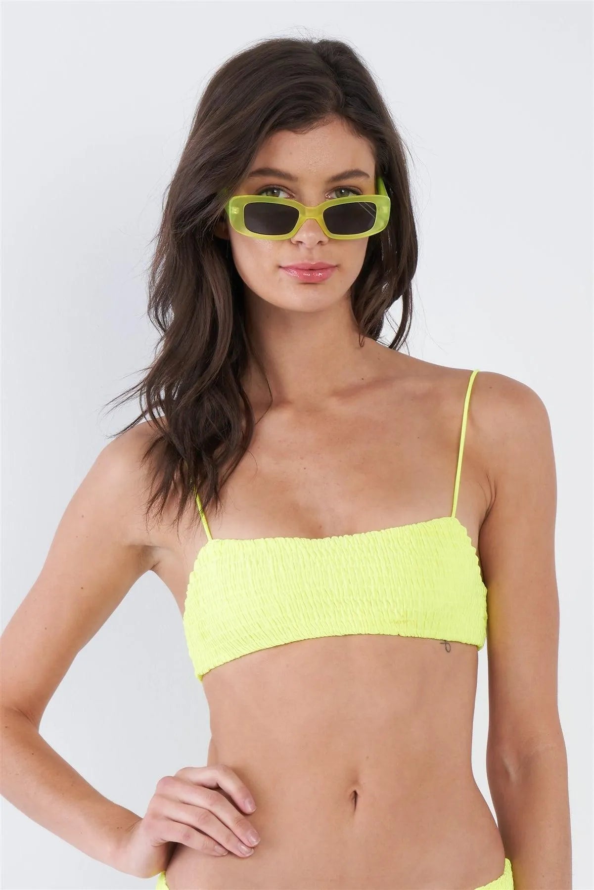 Neon Yellow Square Neck Cami & V-Cut High Thigh Bikini Set /2-2-1